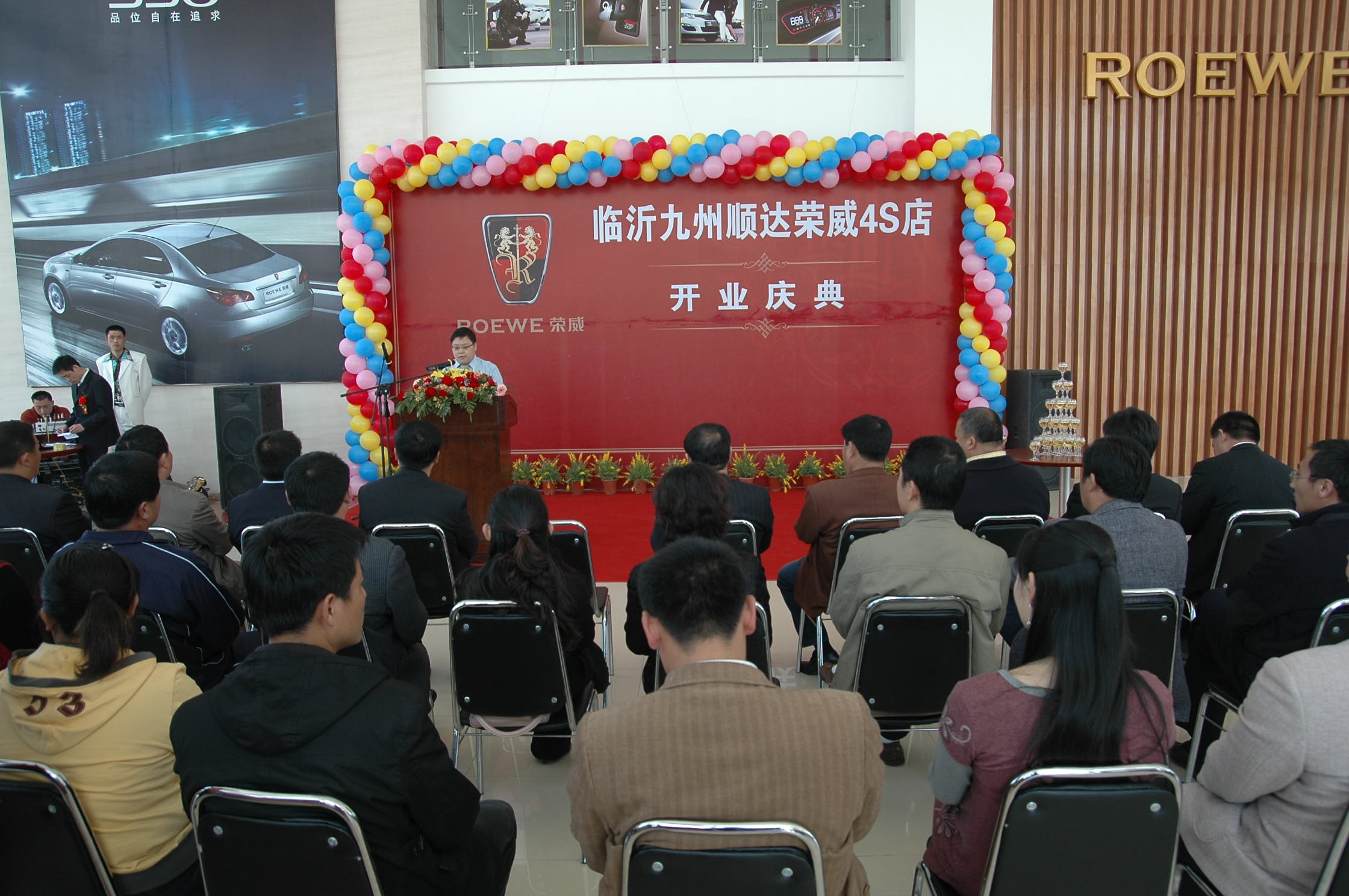 4月16日上午,由山東九州集團(tuán)全資1000余萬建設(shè)的順達(dá)榮威汽車4S店隆重開業(yè),這是九州汽車公司繼奇瑞汽車4S店、長城汽車專營店、華東二手車市場之后又一進(jìn)軍汽車終端市場的大動作。臨沂九州榮威4S店的投入使用,將進(jìn)一步擴(kuò)大山東九州集團(tuán)汽車業(yè)態(tài)的經(jīng)營規(guī)模和經(jīng)營網(wǎng)絡(luò)。臨沂順達(dá)榮威4S店的投入使用,可為廣大臨沂消費(fèi)者提供包括整車銷售、售后服務(wù)、零部件供應(yīng)和信息反饋在內(nèi)的一系列優(yōu)良、專業(yè)、便利的服務(wù)。 (一)車型展示 (二)領(lǐng)導(dǎo)講話