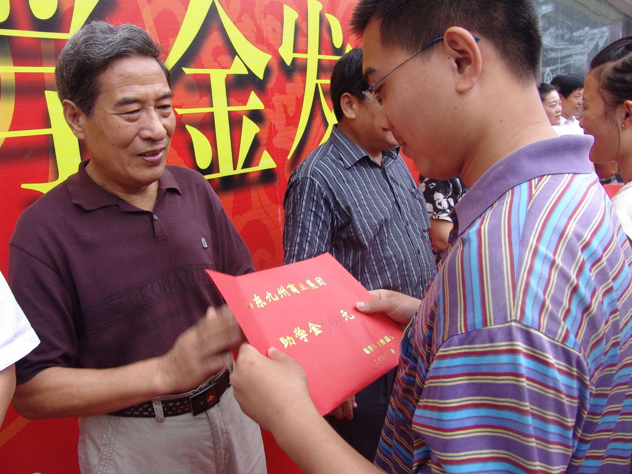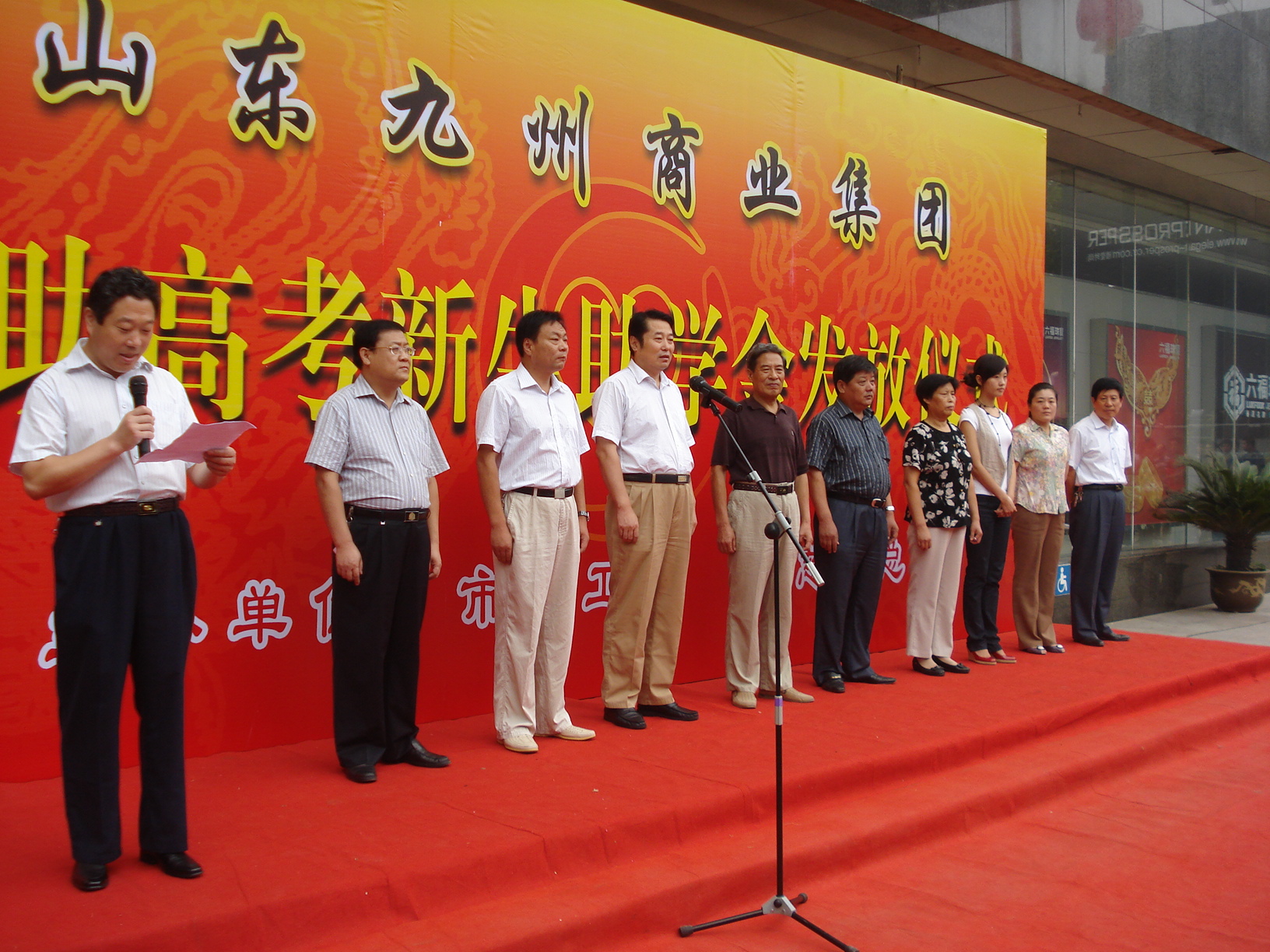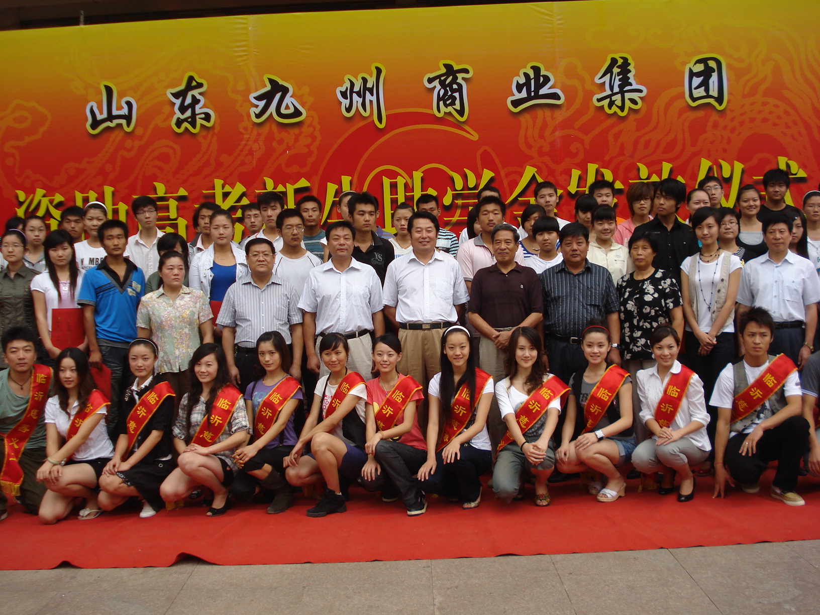 (儀式結(jié)束后領(lǐng)導(dǎo)與受助大學(xué)生合影留念) 8月25日上午,集團(tuán)在九州商業(yè)大廈前舉行山東九州商業(yè)集團(tuán)資助高考新生助學(xué)金發(fā)放儀式。50名受助大學(xué)生每人獲得了3000元的九州商業(yè)集團(tuán)助學(xué)金。市總工會(huì)黨組副書記、副主席王向群,市總工會(huì)黨組成員、副調(diào)研員張濤,市民政局副局長(zhǎng)、市慈善總會(huì)副會(huì)長(zhǎng)兼秘書長(zhǎng)朱步君,市總工會(huì)生產(chǎn)保障部部長(zhǎng)王秀麗,臨沂市城市形象大使姚宇,以及集團(tuán)領(lǐng)導(dǎo)楊本渠、張素芬、楊沂城、王佐文等同志參加助學(xué)金發(fā)放儀式。 集團(tuán)總經(jīng)理?xiàng)钜食恰⑹锌偣?huì)副主席王向群、受助大學(xué)生代表、受助大學(xué)生家長(zhǎng)代表分別在儀式上講話。楊總在講話中表示,企業(yè)在自身不斷發(fā)展的同時(shí),牢記報(bào)效國(guó)家、回饋社會(huì)、積極投身公益的使命,勇于承擔(dān)社會(huì)責(zé)任,熱心支持慈善事業(yè)。多年來(lái)集團(tuán)積極參與各類助學(xué)、助殘、救災(zāi)、濟(jì)困等公益活動(dòng),累計(jì)捐款捐物達(dá)數(shù)百萬(wàn)元,受到社會(huì)各界的一致好評(píng)。楊總說(shuō),大學(xué)生是國(guó)家寶貴的人才資源,是民族的希望、祖國(guó)的未來(lái),肩負(fù)著全面建設(shè)小康社會(huì)、努力構(gòu)建和諧社會(huì)、實(shí)現(xiàn)中華民族偉大復(fù)興的歷史重任。楊總勉勵(lì)受助的大學(xué)生珍惜大學(xué)的美好時(shí)光,樹立遠(yuǎn)大理想,努力學(xué)習(xí)文化知識(shí),以知識(shí)改變命運(yùn),用優(yōu)異的成績(jī)、過(guò)硬的本領(lǐng)奉獻(xiàn)社會(huì)、報(bào)效祖國(guó)、建設(shè)家鄉(xiāng)。 市總工會(huì)副主席王向群在講話中首先向楊本渠董事長(zhǎng)及九州商業(yè)集團(tuán)多年來(lái)積極獻(xiàn)身公益事業(yè)表示了感謝。他勉勵(lì)受助的大學(xué)生珍惜大學(xué)生活,不忘社會(huì)各界的幫助,努力學(xué)習(xí),回報(bào)社會(huì)。他希望更多的企業(yè)投身到社會(huì)慈善事業(yè)中來(lái),讓更多的弱勢(shì)群體享受到祖國(guó)大家庭的溫暖。