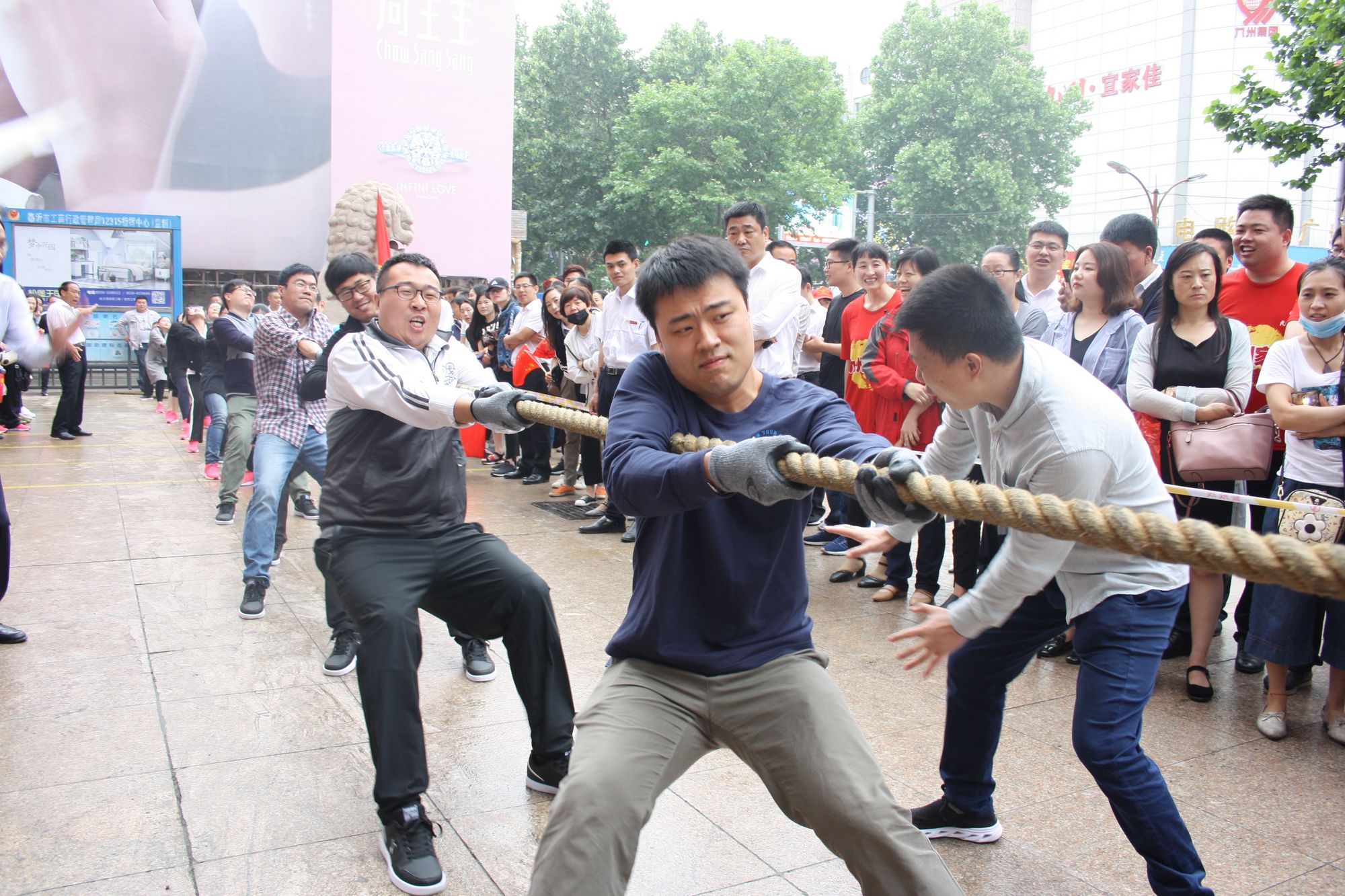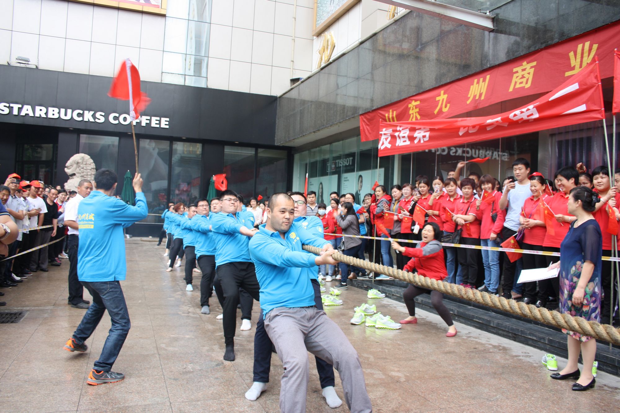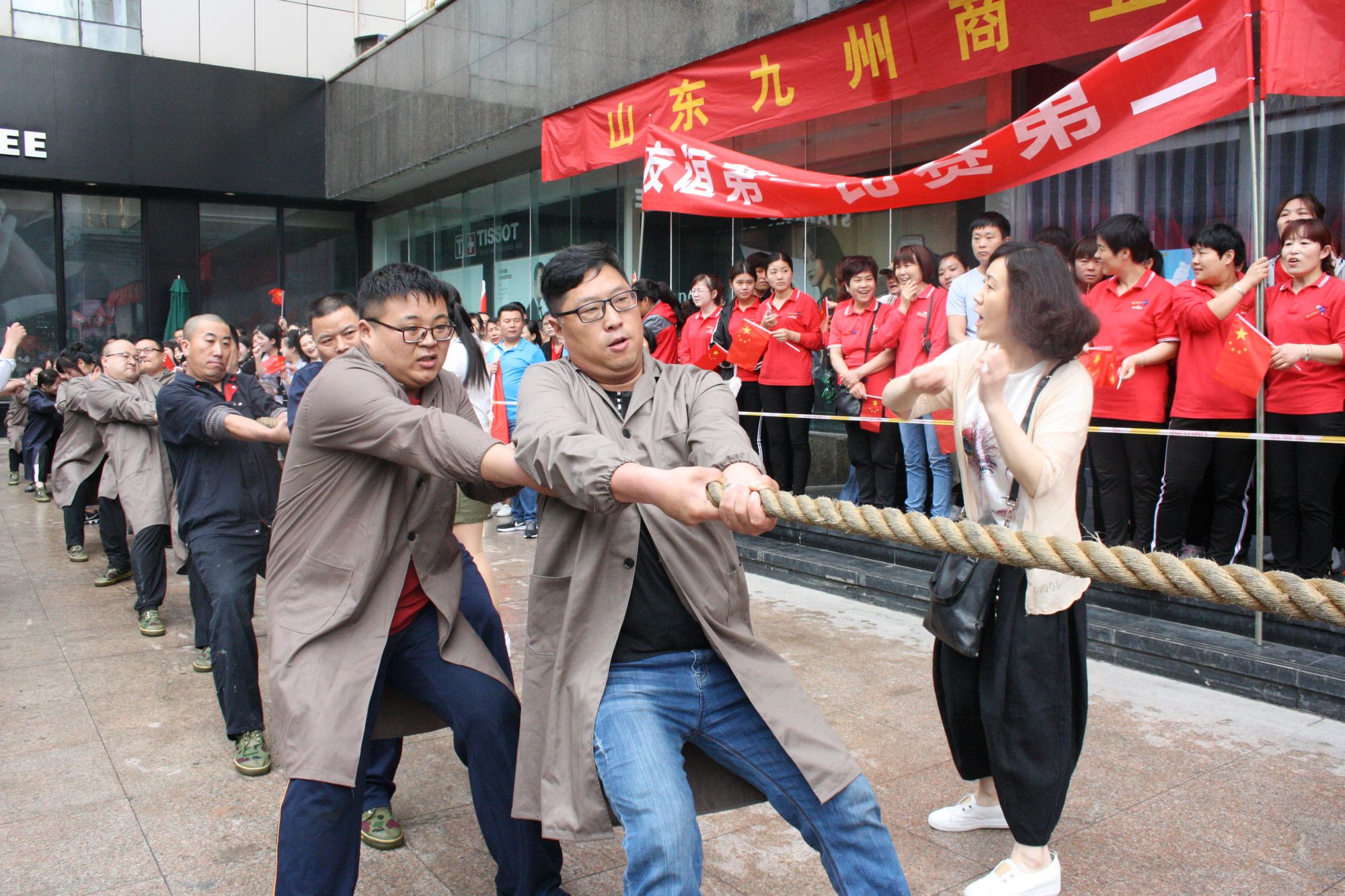 5月17日上午七點(diǎn),九州集團(tuán)2018年運(yùn)動(dòng)會(huì)拔河比賽項(xiàng)目伴著激昂的音樂(lè)在九州大廈解放路店廣場(chǎng)拉開帷幕。來(lái)自各單位和集團(tuán)行政的六支代表隊(duì)共計(jì) 108人參加比賽。 來(lái)自各單位和集團(tuán)行政的六支代表隊(duì),已經(jīng)準(zhǔn)備就緒,蓄勢(shì)待發(fā)。一聲哨響,兩隊(duì)展開激烈的爭(zhēng)奪,加油聲、鼓勁聲、歡呼聲此起彼伏,你爭(zhēng)我奪,你上我下,一片昂揚(yáng)氣氛。這是一場(chǎng)勢(shì)均力敵的較量,兩隊(duì)的比賽已經(jīng)進(jìn)入膠著狀態(tài),緊張激烈的現(xiàn)場(chǎng)氣氛將整個(gè)比賽推向了高潮;這是一場(chǎng)實(shí)力懸殊的戰(zhàn)斗,在不甘示弱的團(tuán)隊(duì)爭(zhēng)奪中,永不放棄,勢(shì)要賽出團(tuán)隊(duì)的風(fēng)采和精神。經(jīng)過(guò)激烈的角逐,來(lái)自臨沂賓館的代表隊(duì)眾望所歸奪得桂冠,九州大廈代表隊(duì)、汽貿(mào)公司代表隊(duì)分獲二、三名,九州宜家佳代表隊(duì)、超市公司代表隊(duì)、集團(tuán)行政代表隊(duì)分獲四至六名。 拔河比賽是九州集團(tuán)運(yùn)動(dòng)會(huì)上延續(xù)多年的比賽項(xiàng)目,一年又一年的榮譽(yù)爭(zhēng)奪,承載著九州人團(tuán)結(jié)一心、頑強(qiáng)拼搏的信念堅(jiān)持;展現(xiàn)著九州人昂揚(yáng)向上、積極進(jìn)取的精神風(fēng)貌。(集團(tuán)辦公室 劉傳芳)