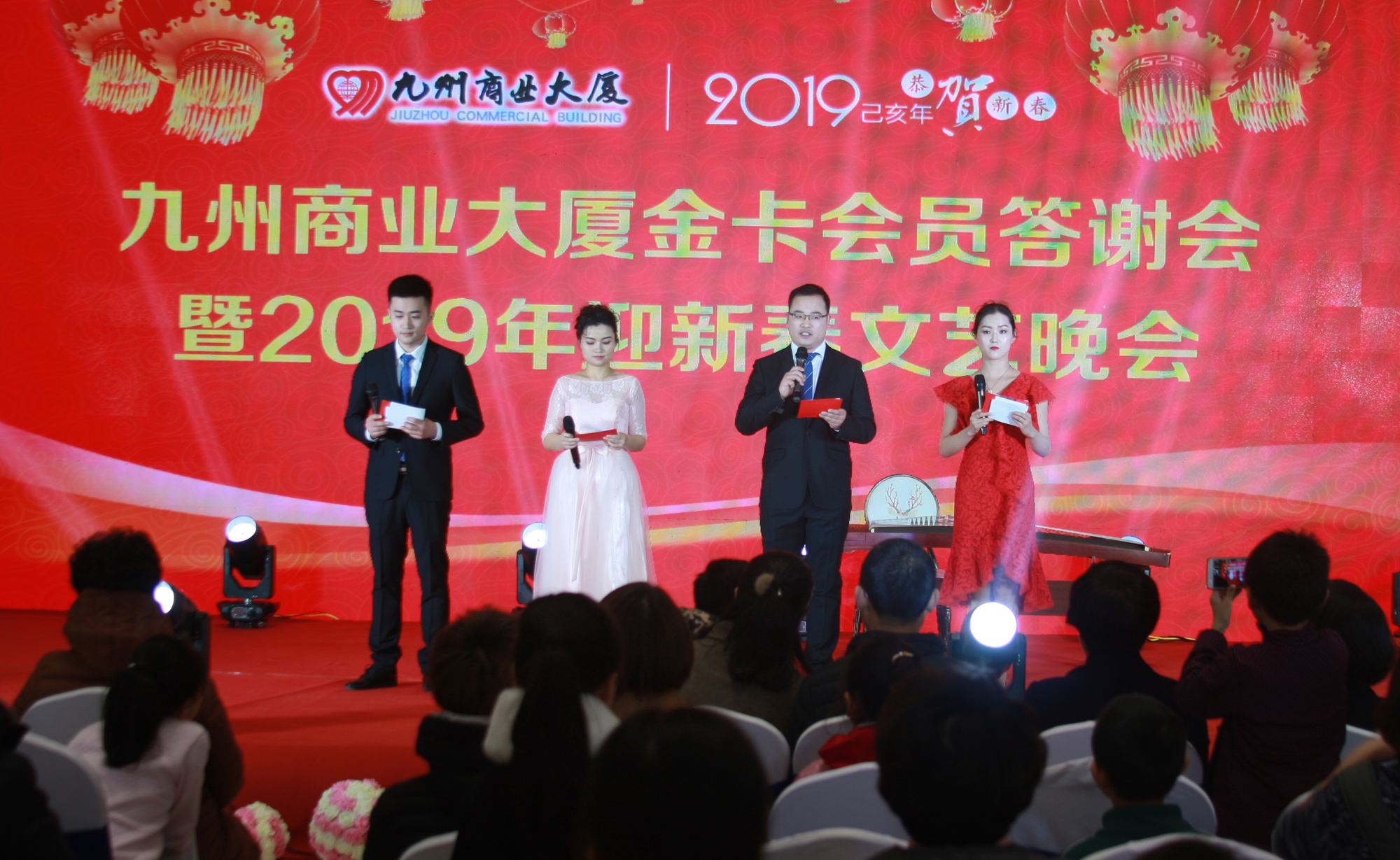 飛歌雅頌贊華年,異彩流光唱新春。1月17日晚,九州商業(yè)大廈金卡會員答謝會暨2019年迎新春文藝晚會在一樓中庭隆重舉行。受邀金卡會員代表、大廈領(lǐng)導(dǎo)和部分職工及現(xiàn)場顧客觀看了此次晚會。 晚會由大廈及演藝公司精心準備的11個節(jié)目組成,形式多樣,內(nèi)容精彩,為受邀的金卡會員及現(xiàn)場顧客展示了九州人朝氣蓬勃、奮發(fā)向上的精神風(fēng)貌。晚會在女子樂坊曲藝表演中拉開序幕,歌曲《春天的芭蕾》《我只在乎你》以優(yōu)美的旋律征服著現(xiàn)場觀眾的耳朵;雜技《男女力量》用力量的展示贏得了現(xiàn)場觀眾的陣陣掌聲;川劇《變臉》更是讓人匪夷所思,一張臉剎那間就可以千變?nèi)f化;薩克斯獨奏《回家》《今日痛飲慶功酒》彰顯了樂器的魅力;舞蹈《中國脊梁》、《風(fēng)箏誤》《共圓中國夢》《絨花》更是給現(xiàn)場觀眾帶來了一場場優(yōu)美的視覺盛宴。經(jīng)過近兩小時的精彩演出,晚會在節(jié)奏感十足的快板舞《九州贊》中落下帷幕。 整場晚會熱烈、喜慶、充滿正能量,不僅有精彩絕倫的文藝演出,還穿插了現(xiàn)場互動抽獎環(huán)節(jié),令受邀的金卡會員朋友高興而來,滿意而歸。(九州大廈 戚斌)