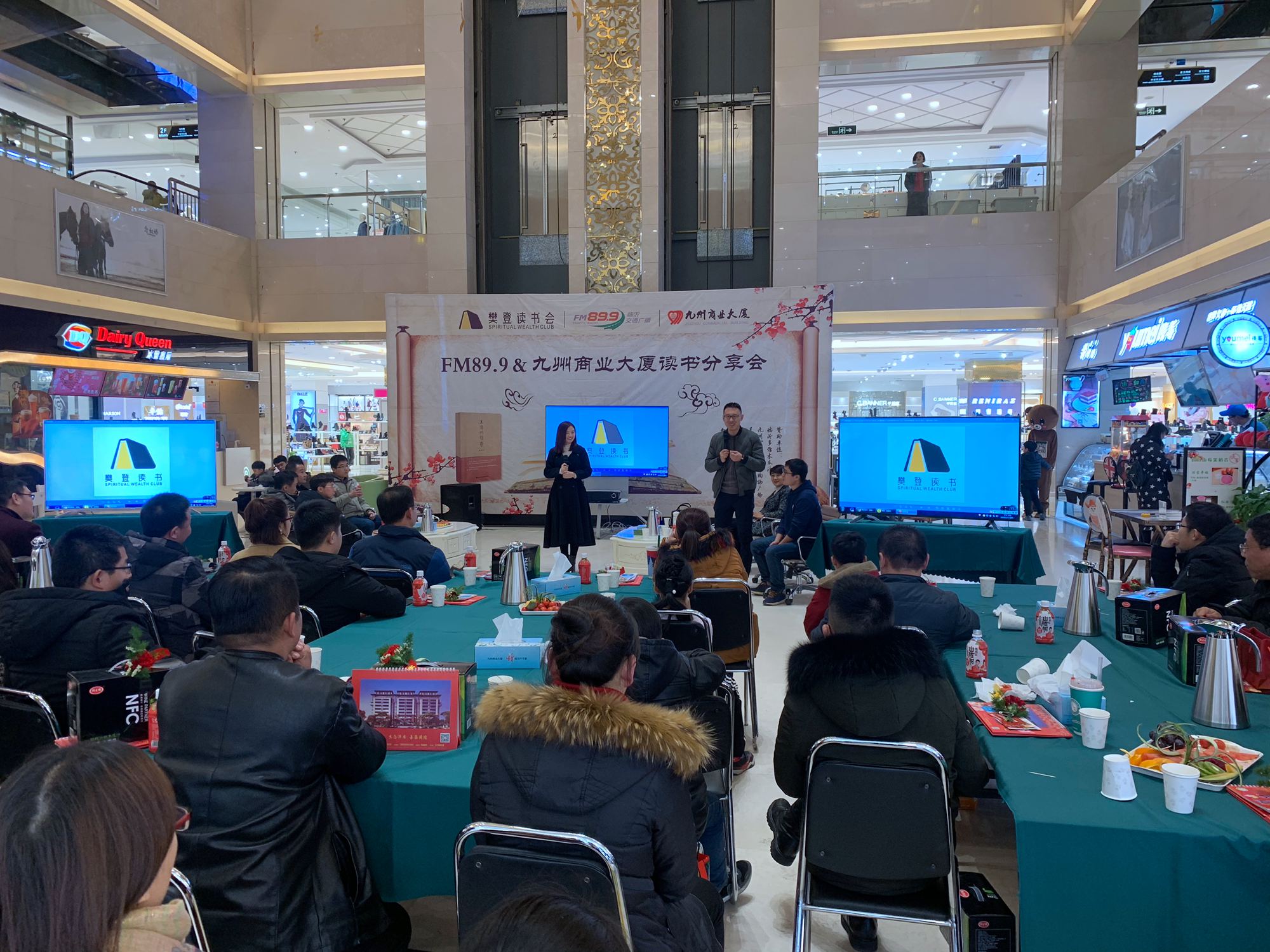 1月21日晚,由九州商業(yè)大廈、樊登讀書會、FM89.9臨沂交通廣播共同舉辦的讀書分享會在九州商業(yè)大廈一樓中庭舉行,近60名讀書愛好者參與了此次活動。 此次讀書會是專門針對讀書愛好者打造的讀書交流活動;顒又校亲x書會、FM89.9臨沂交通廣播工作人員以《王陽明哲學(xué)》一書,向讀書愛好者詳細(xì)講述了王陽明的思想核心“致良知、知行合一”,并分享了讀書感悟。讀書愛好者們踴躍發(fā)言,以各種形式表達(dá)了熱愛讀書給自己在學(xué)習(xí)和生活中帶來的思考與感悟;同時在思想的交流碰撞中,對文學(xué)又有了更深的理解。 此次讀書會活動旨在陶冶情操,拓寬視野,分享讀書感悟,達(dá)到美文共享、凈化心靈,提高審美修養(yǎng)和人文底蘊(yùn),讓人們真正享受讀書帶來的樂趣。(九州大廈戚斌)