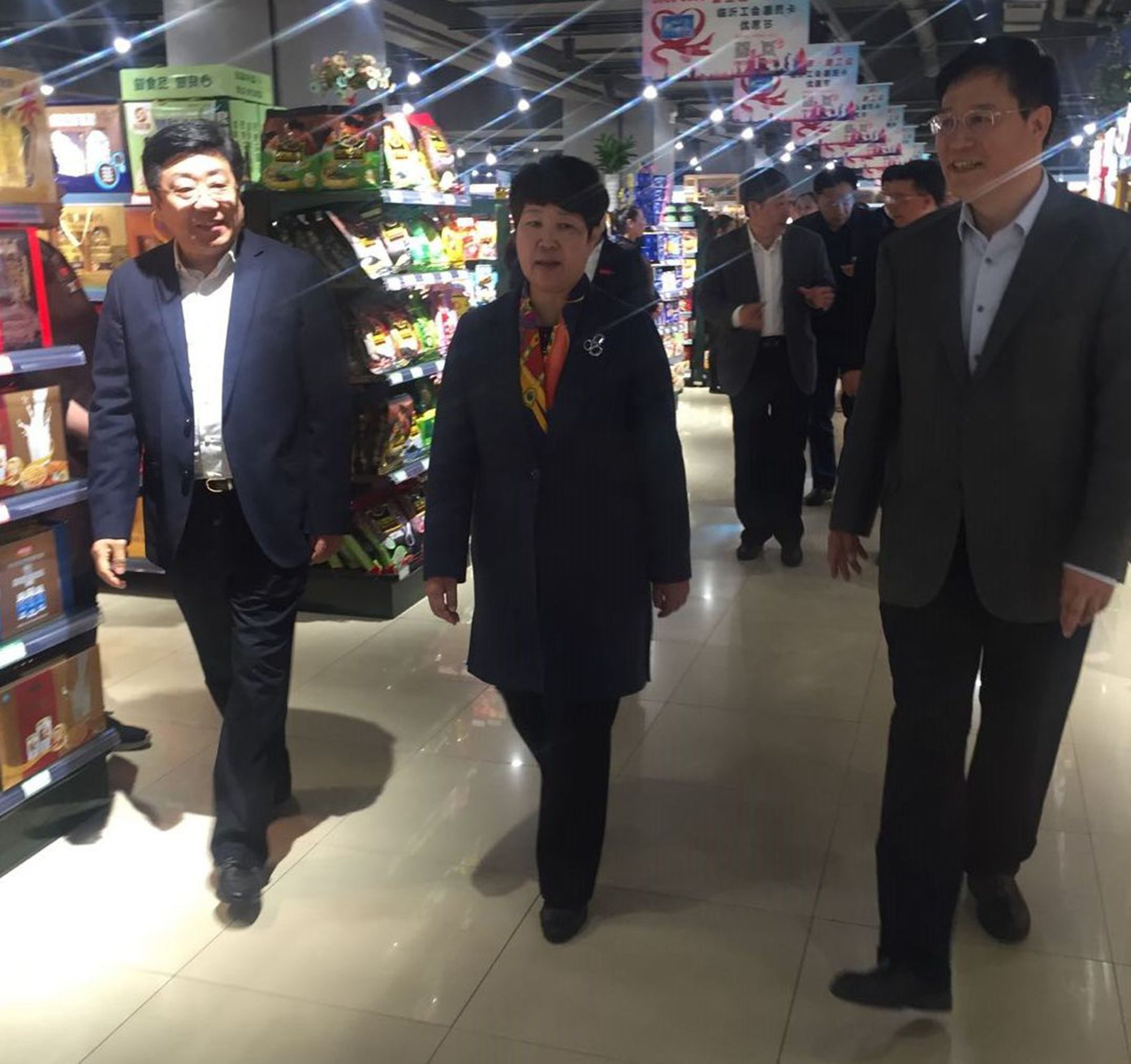 4月30日上午,臨沂市總工會(huì)聯(lián)合臨商銀行在九州商業(yè)大廈門前廣場舉行“愛工惠•惠工眾—臨沂工會(huì)惠員卡優(yōu)惠節(jié)”啟動(dòng)儀式。臨沂市人大常委會(huì)副主任、市總工會(huì)主席劉淑秀,臨沂市總工會(huì)黨組書記、常務(wù)副主席尚江華,臨商銀行董事長錢進(jìn)、臨商銀行行長王君泰、臨商銀行副行長徐毅、臨商銀行高級(jí)專家劉文娟,九州集團(tuán)董事長兼總經(jīng)理?xiàng)钣罇|、黨委書記王楠楠出席啟動(dòng)儀式。啟動(dòng)儀式由臨沂市總工會(huì)黨組成員、副主席高立國主持。 啟動(dòng)儀式上,楊永東作為工會(huì)惠員卡服務(wù)基地代表講話,他表示此次工會(huì)惠員卡優(yōu)惠節(jié)的九州專場,九州商業(yè)大廈、九州超市所屬的30多家門店將針對(duì)職工會(huì)員開展黃金珠寶、化妝品和服飾等商品的打折優(yōu)惠活動(dòng);同時(shí),還將推出食品飲料、糧油副食、家用百貨等200余種特惠商品。為更好的讓利職工會(huì)員,服務(wù)職工會(huì)員,九州集團(tuán)將重點(diǎn)做好三方面的工作:一是嚴(yán)格按照市總工會(huì)的統(tǒng)一部署要求,積極參與活動(dòng)的宣傳,充分利用門店多、分布廣的優(yōu)勢,在賣場內(nèi)營造濃厚的宣傳氛圍;二是始終堅(jiān)持誠信經(jīng)營,嚴(yán)把商品質(zhì)量關(guān),加強(qiáng)監(jiān)督與檢查,把最安全、最放心的商品提供給廣大職工會(huì)員;三是做好服務(wù)工作,努力為廣大職工會(huì)員提供溫馨舒適的消費(fèi)環(huán)境和優(yōu)質(zhì)貼心的服務(wù)。 啟動(dòng)儀式結(jié)束后,臨沂市總工會(huì)和臨商銀行各位領(lǐng)導(dǎo)在集團(tuán)領(lǐng)導(dǎo)陪同下走進(jìn)九州大廈超市對(duì)惠員卡優(yōu)惠節(jié)活動(dòng)開展情況進(jìn)行現(xiàn)場參觀指導(dǎo)。(文/劉文靜 圖/戚斌)
