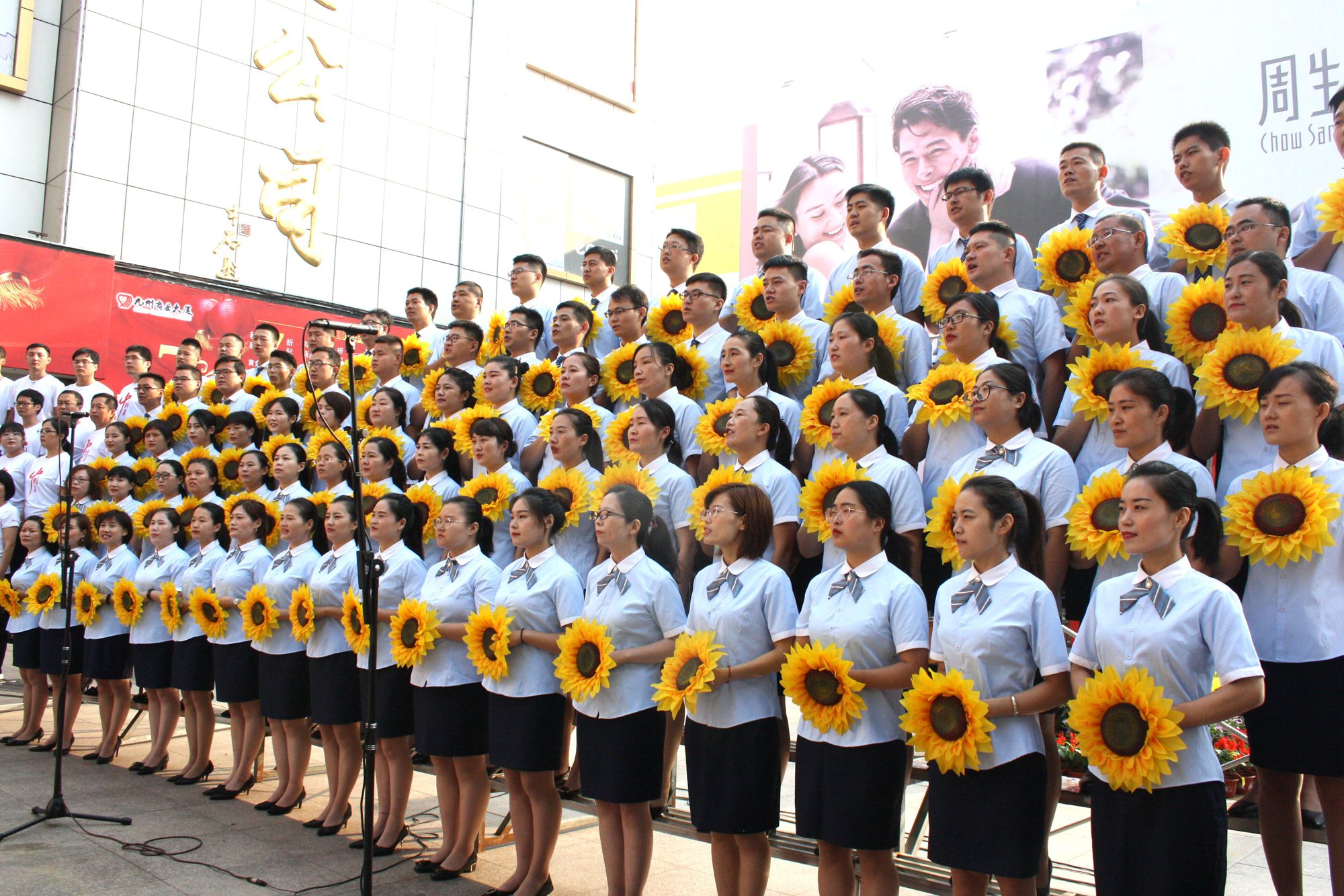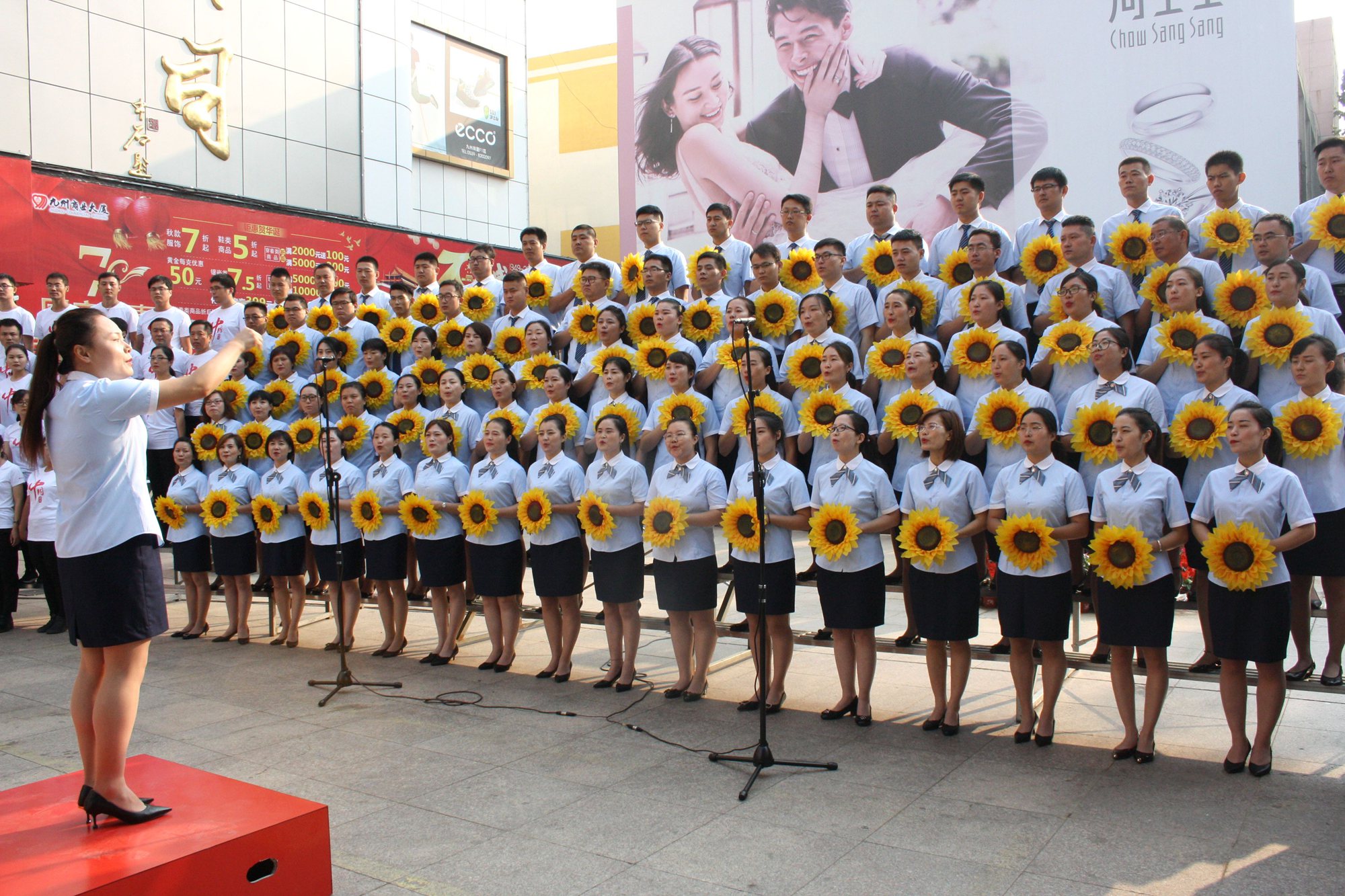 躬逢新時(shí)代,頌歌獻(xiàn)祖國(guó)。9月30日早上,集團(tuán)在九州商業(yè)大廈門前廣場(chǎng)舉辦慶祝新中國(guó)成立70周年歌詠比賽,來(lái)自各經(jīng)營(yíng)單位和集團(tuán)行政處室的六支代表隊(duì)共計(jì)450余人參加了比賽。 余音繞梁,群情激昂,或雄壯,或深情,或火熱,或沉醉,六支代表隊(duì)用動(dòng)聽的歌聲直抒對(duì)祖國(guó)的滿腔熱愛,展現(xiàn)新時(shí)代九州人深厚的愛國(guó)情懷。“起來(lái),不愿做奴隸的人們,把我們的血肉筑成我們新的長(zhǎng)城……”比賽伊始,舉行升國(guó)旗儀式,伴隨著緩緩升起的五星紅旗,六支代表隊(duì)齊唱國(guó)歌,斗志昂揚(yáng)。隨后,全體大合唱《九州集團(tuán)之歌》更加彰顯了九州員工蓬勃向上、意氣風(fēng)發(fā)的精神風(fēng)貌。本次比賽,每支代表隊(duì)演唱兩首參賽曲目,以歌詠志、以歌抒懷!蹲鎳(guó)頌》《我和我的祖國(guó)》《保衛(wèi)黃河》《大中國(guó)》《沒有共產(chǎn)黨就沒有新中國(guó)》《歌唱祖國(guó)》《不忘初心》《我愛你中國(guó)》《祖國(guó)不會(huì)忘記》《愛我中華》等一首首膾炙人口的歌曲陸續(xù)唱響,唱出了九州人對(duì)祖國(guó)母親的無(wú)限熱愛和美好祝福。嘹亮的歌聲在現(xiàn)場(chǎng)久久回蕩,吸引了越來(lái)越多的行人駐足觀看,現(xiàn)場(chǎng)響起一陣又一陣的掌聲。比賽的最后,所有參賽隊(duì)員及現(xiàn)場(chǎng)觀眾在指揮老師的統(tǒng)一指揮下,共同唱響《歌唱祖國(guó)》,“五星紅旗迎風(fēng)飄揚(yáng),勝利歌聲多么嘹亮,歌唱我們親愛的祖國(guó),從今走向繁榮富強(qiáng)……”熟悉的旋律伴隨著飄揚(yáng)的五星紅旗,將現(xiàn)場(chǎng)的氣氛推向高潮,本次比賽圓滿落下帷幕。 同唱愛國(guó)歌,共筑九州夢(mèng)。當(dāng)下,九州人將青春與熱血融入旋律,將情懷與夢(mèng)想融入歌聲,獻(xiàn)禮祖國(guó)。而今后,九州人將繼續(xù)緊隨偉大祖國(guó)發(fā)展步伐,不忘初心,砥礪奮進(jìn),再創(chuàng)事業(yè)新輝煌。(文/劉文靜)