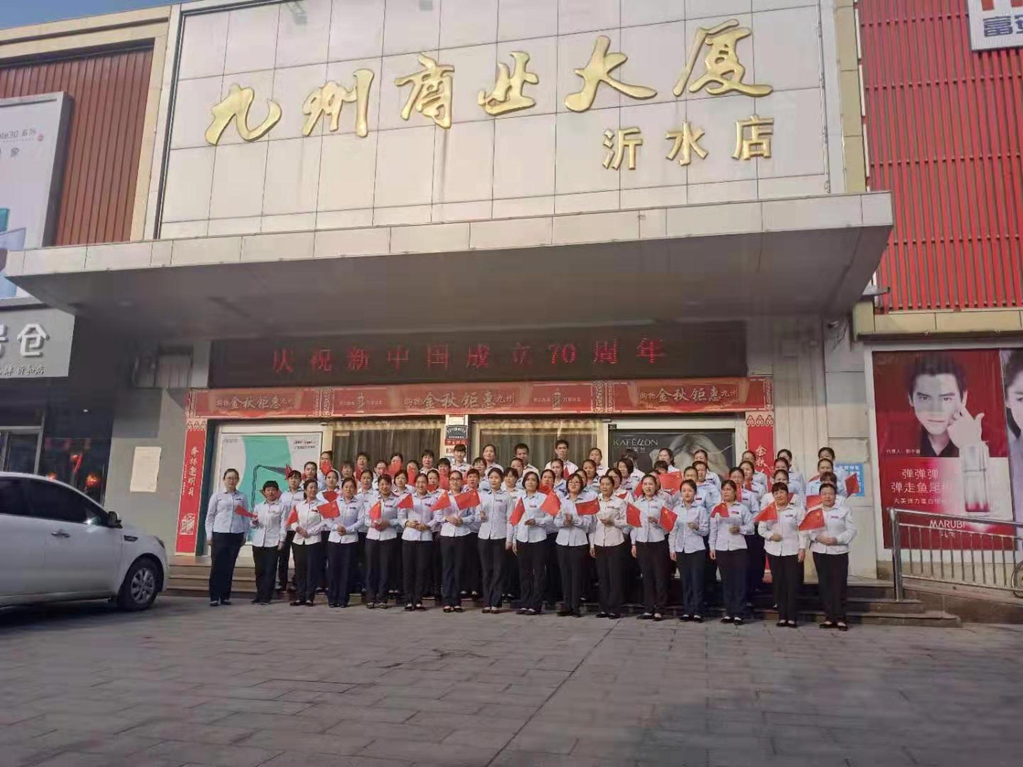 禮樂(lè)光輝盛,山河氣象新。躬逢新時(shí)代,頌歌獻(xiàn)祖國(guó)。 10月1日上午,九州商業(yè)大廈沂水區(qū)域門(mén)店分別在各店門(mén)前廣場(chǎng)舉行了慶國(guó)慶合唱活動(dòng)。先后合唱了《我和我的祖國(guó)》、《九州集團(tuán)之歌》等歌曲。 同唱愛(ài)國(guó)歌,共筑九州夢(mèng)。歌聲唱出了九州人對(duì)祖國(guó)母親的無(wú)限熱愛(ài)和美好祝福,唱出了九州人團(tuán)結(jié)奮進(jìn)、勇往直前的豪氣。這就是在世界東方生機(jī)盎然的中國(guó),這就是在紅色沂蒙大地上蒸蒸日上的九州。(文圖/黃明濤)