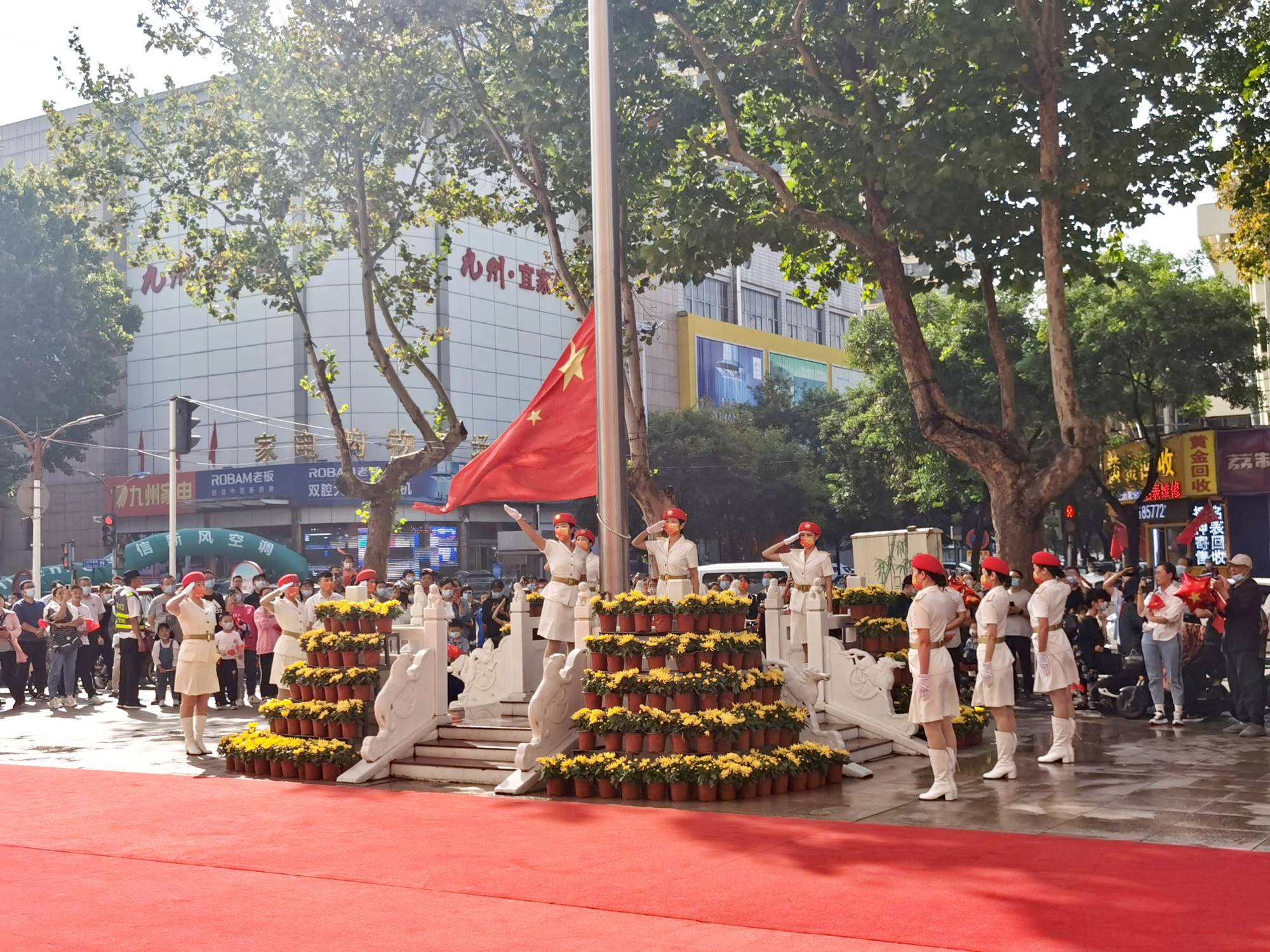 10月1日上午,九州商業(yè)大廈解放路店在門前廣場舉行了升國旗儀式,部分中層管理人員、主管參加,共同慶祝祖國成立73周年。