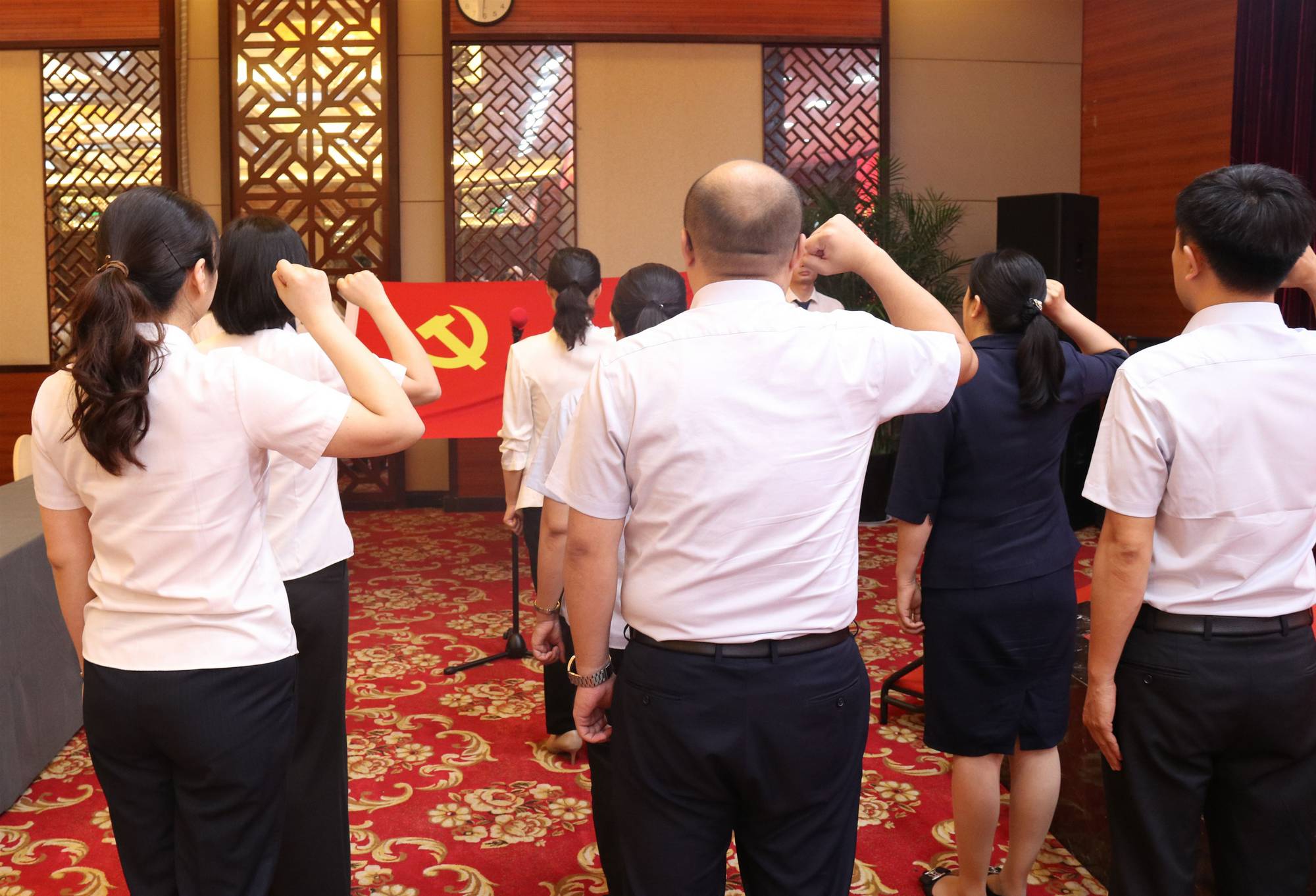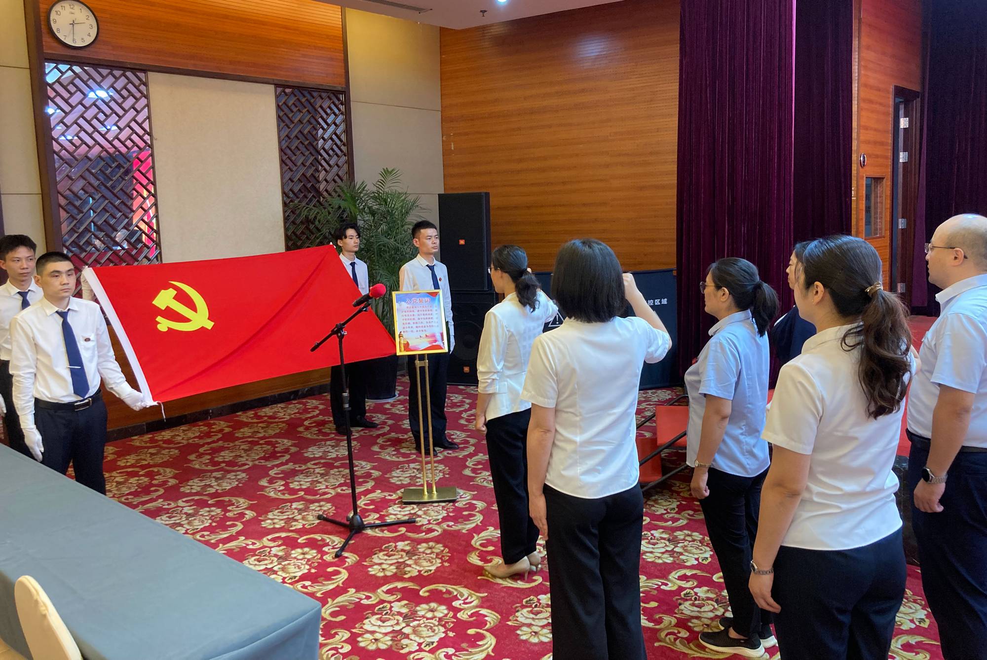 會議在雄壯的國歌聲中拉開帷幕。會上,集團黨委副書記、紀委書記王姣帶領(lǐng)集團6名新發(fā)展黨員面向黨旗莊嚴宣誓,錚錚誓言、字字鏗鏘,傳遞著每一位新發(fā)展黨員為黨的事業(yè)奮斗終身的決心。