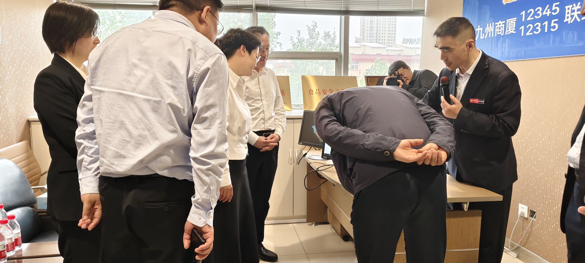 4月23日上午,全市市場監(jiān)管系統(tǒng)12345 臨沂首發(fā)“專項深辦”暨“突破蘭山”工作交流會議在蘭山區(qū)召開。臨沂市市場監(jiān)管局黨組書記、局長徐濤,臨沂市市場監(jiān)管局黨組成員、副局長李曉,各縣區(qū)局分管負責領導等一行30余人到九州商業(yè)大廈解放路店觀摩調(diào)研客訴提質(zhì)降量工作。集團董事長、黨委書記王楠楠,集團總經(jīng)理楊冰,九州商業(yè)大廈總經(jīng)理李國等陪同調(diào)研。