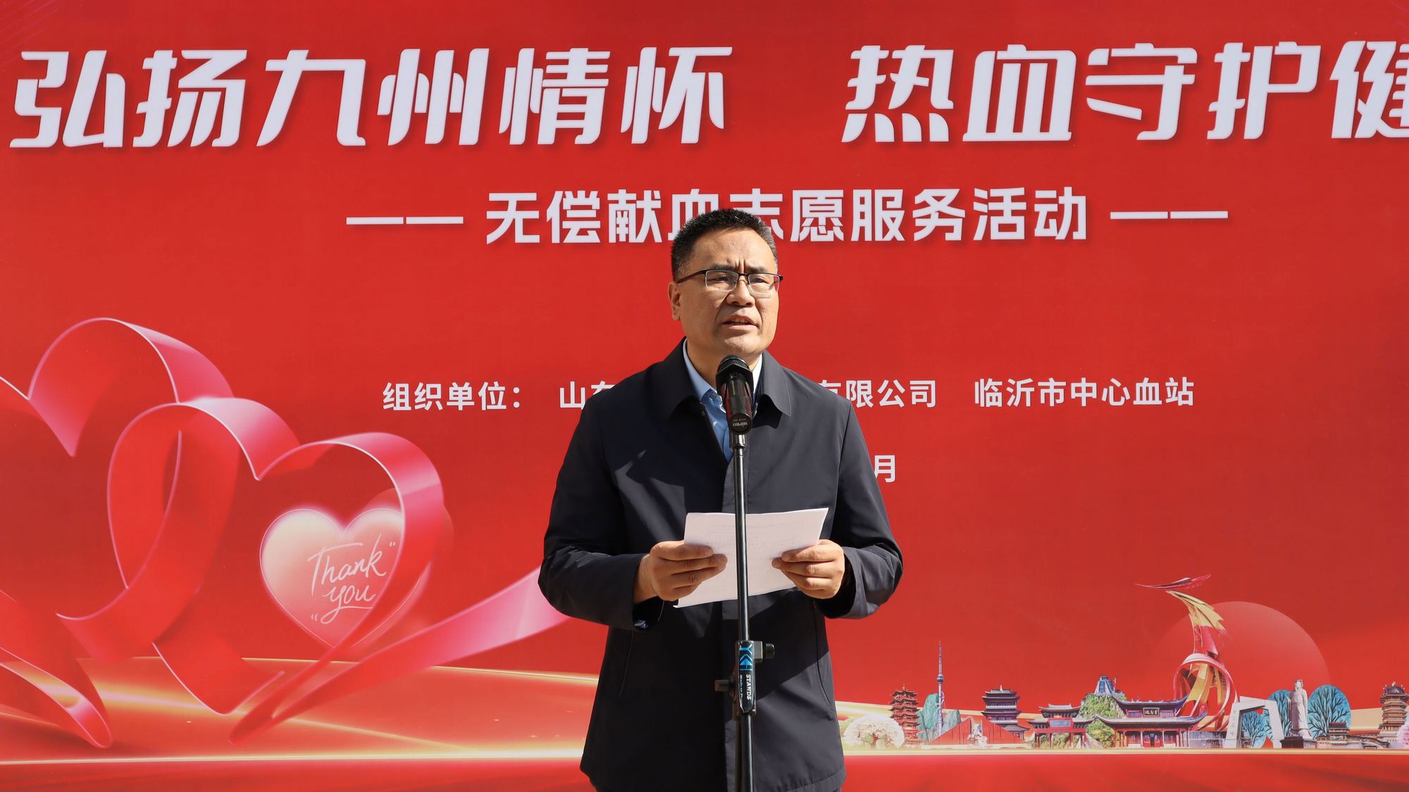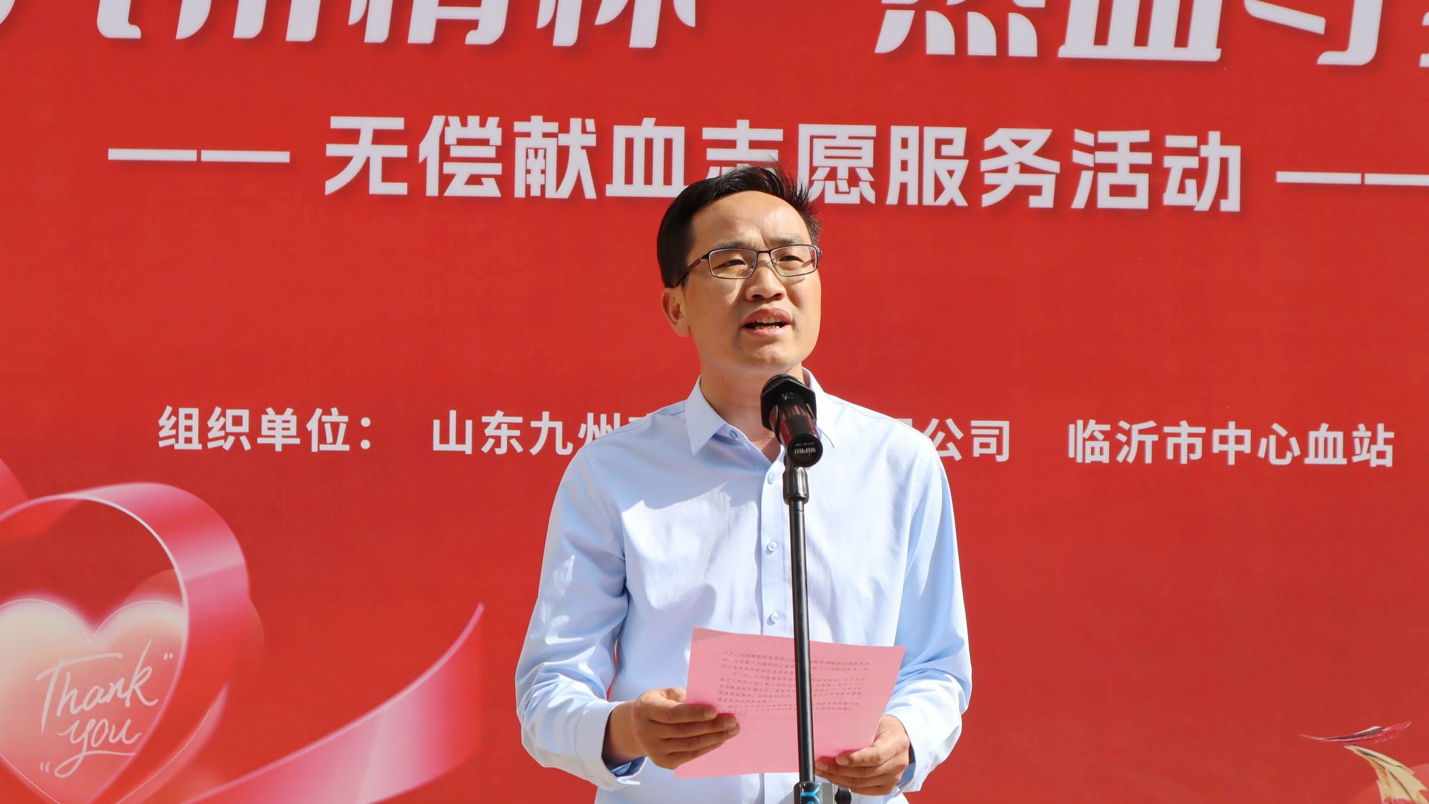 周蘭友在致辭中表示,九州集團在六十余年的發(fā)展歷程中,始終把開展社會公益事業(yè)作為服務(wù)社會、心系社會的責(zé)任和使命!皭坌闹鷼垺薄俺栔鷮W(xué)”“夕陽扶老”“康復(fù)助醫(yī)”等到處都留下了九州人的足跡。下一步,九州集團將積極開展宣傳活動,讓廣大干部員工深入了解無償獻血知識,以點帶面,增進公眾對無償獻血的正確認(rèn)識,在大家的共同努力下,讓更多的患者得到幫助,生命得到延續(xù),為推動臨沂市健康事業(yè)高質(zhì)量發(fā)展作出積極貢獻。