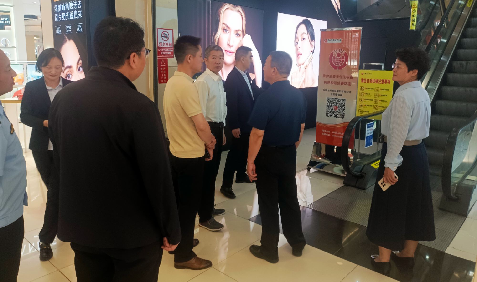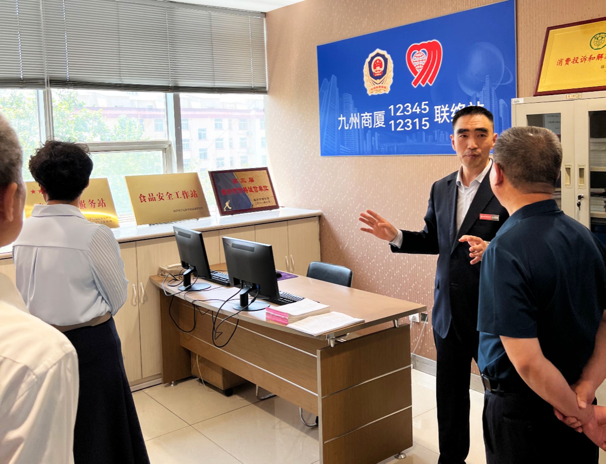 4月25日上午,濟寧市市場監(jiān)管局一級調(diào)研員、消協(xié)常務(wù)副會長張艷果一行到九州商業(yè)大廈解放路店調(diào)研消費維權(quán)服務(wù)站工作開展情況,臨沂市市場監(jiān)管局黨組成員、副局長李曉及分管消保工作的領(lǐng)導陪同。