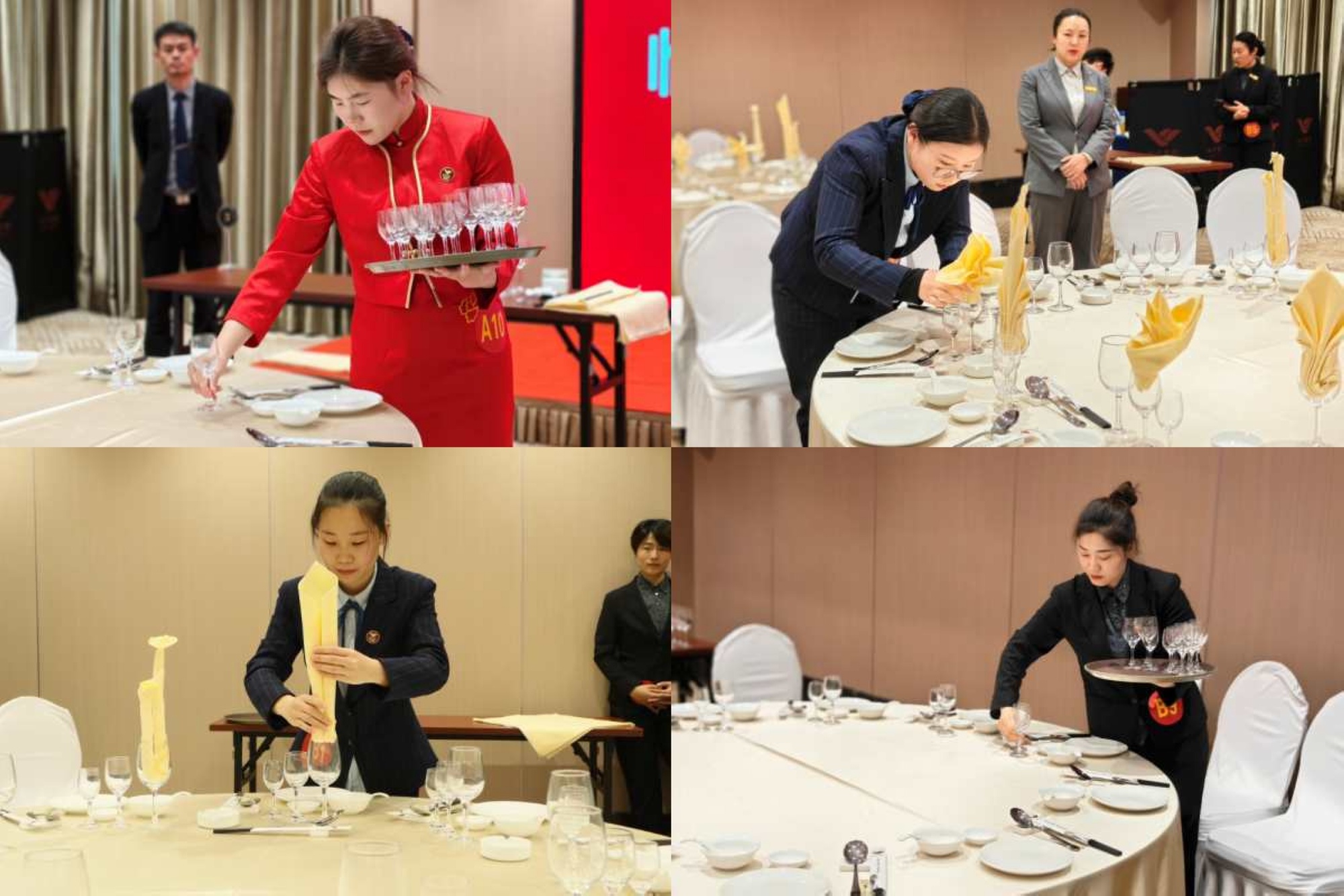 本次技能比武項(xiàng)目為餐廳中餐宴會擺臺,比賽分為員工組和基層管理人員組,現(xiàn)場抽簽決定參賽順序,評委由臨沂賓館副總經(jīng)理、分店店總及各餐廳負(fù)責(zé)人組成。比賽中,從鋪?zhàn)啦、餐碟定位、擺放餐具、餐巾折花到最后的放餐椅,選手們一氣呵成,手法嫻熟快捷、動作流暢規(guī)范。從定位精準(zhǔn)的桌布、按距離要求擺放的餐具和美觀大方的餐巾折花都透露出選手們的專業(yè)與用心,精準(zhǔn)展現(xiàn)了宴會擺臺的技藝。經(jīng)過評委綜合評比,沂蒙路店貴賓樓餐廳部丁朝陽、開發(fā)區(qū)店餐廳部陳彩霞分獲基層管理人員組和員工組第一名;周玉、薛會娜分獲基層管理人員組第二、第三名,劉雅如、房桂宇分獲員工組第二、第三名。