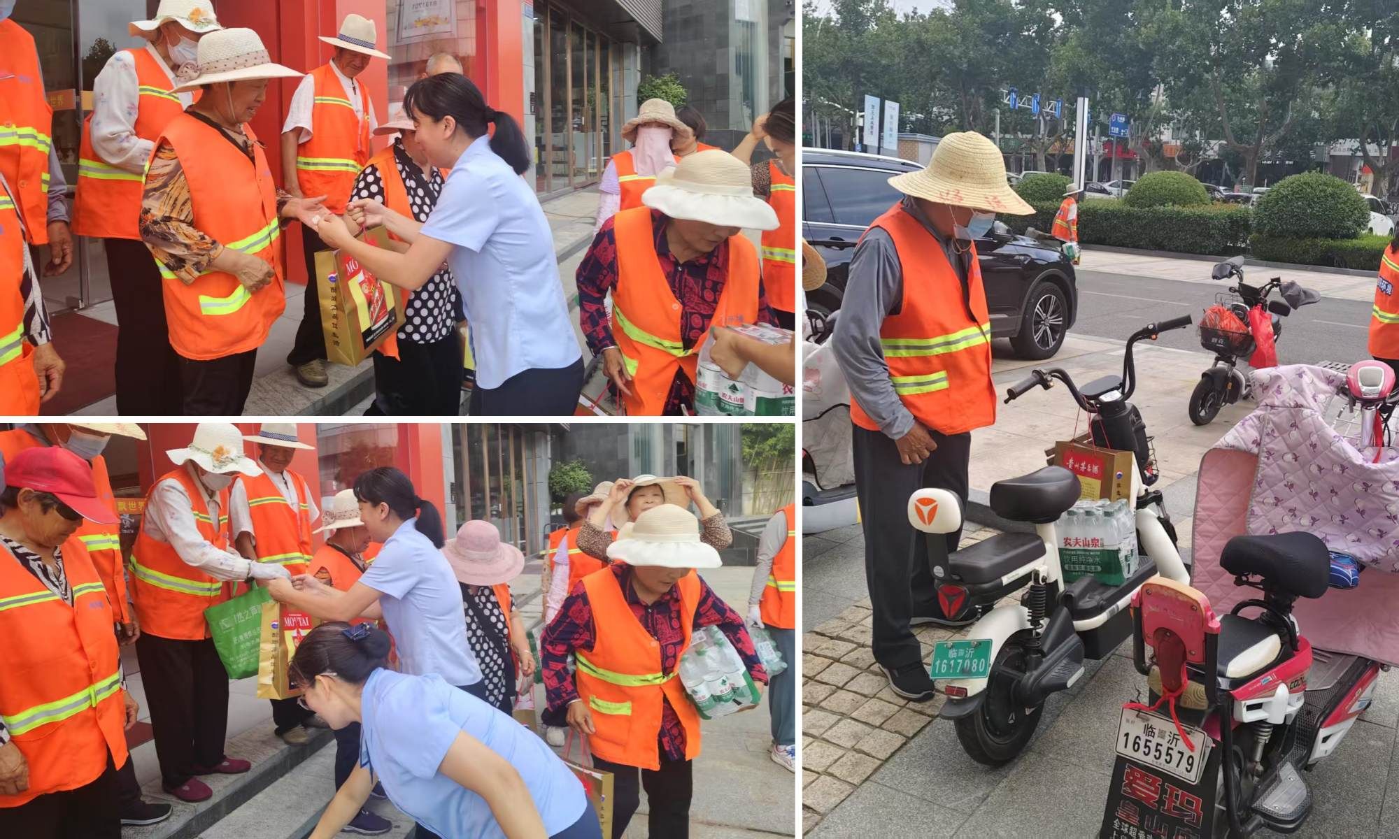 活動(dòng)當(dāng)天,專賣店工作人員早早的便將精心準(zhǔn)備的綠豆、白糖、礦泉水等消暑物資擺放整齊。隨著結(jié)束清掃任務(wù)的環(huán)衛(wèi)工人陸續(xù)到來,工作人員將消暑物資送到環(huán)衛(wèi)工人手中,為他們?cè)诳崾钪袔硪环萸呷诵钠⒌那鍥觥?