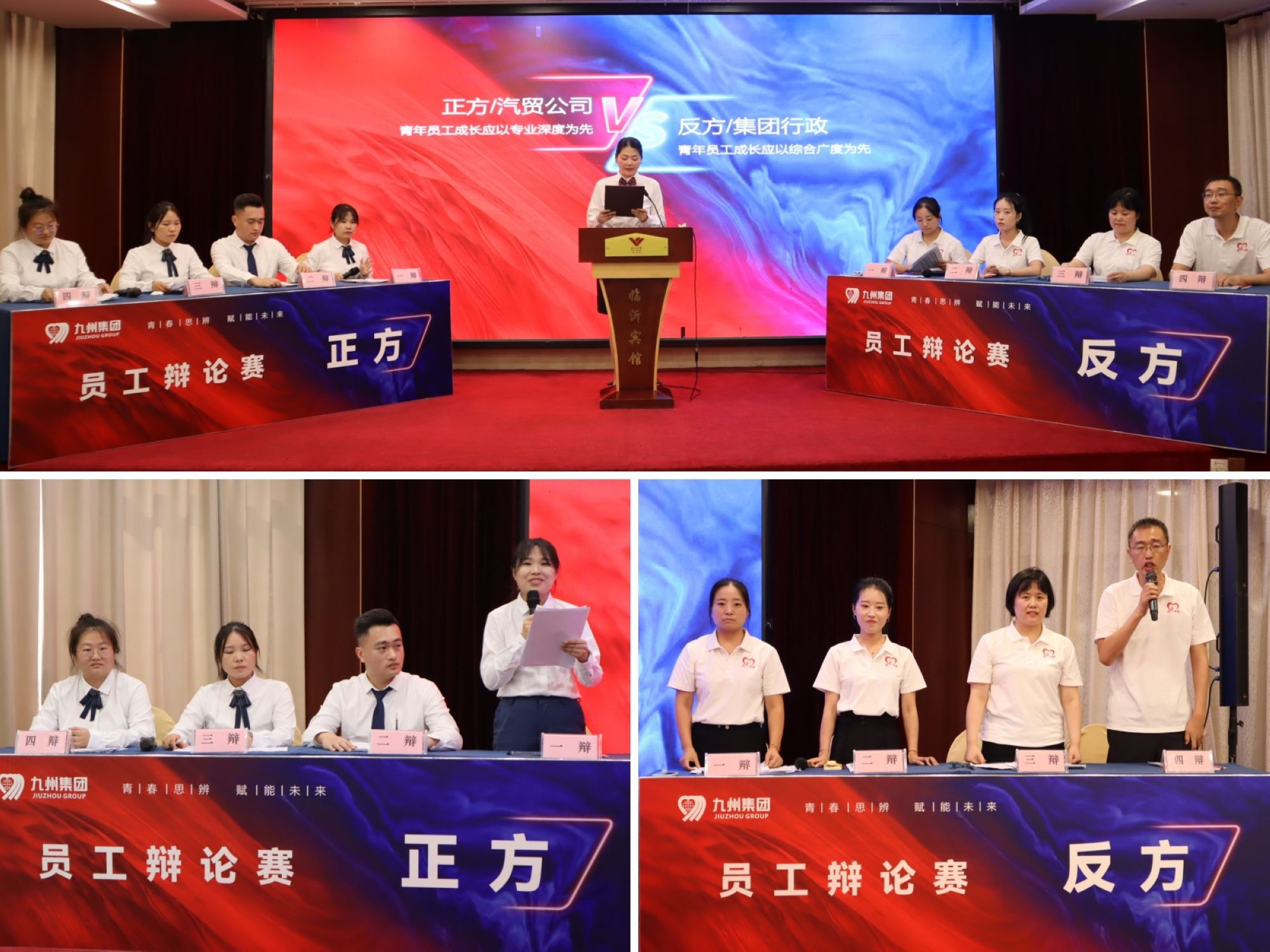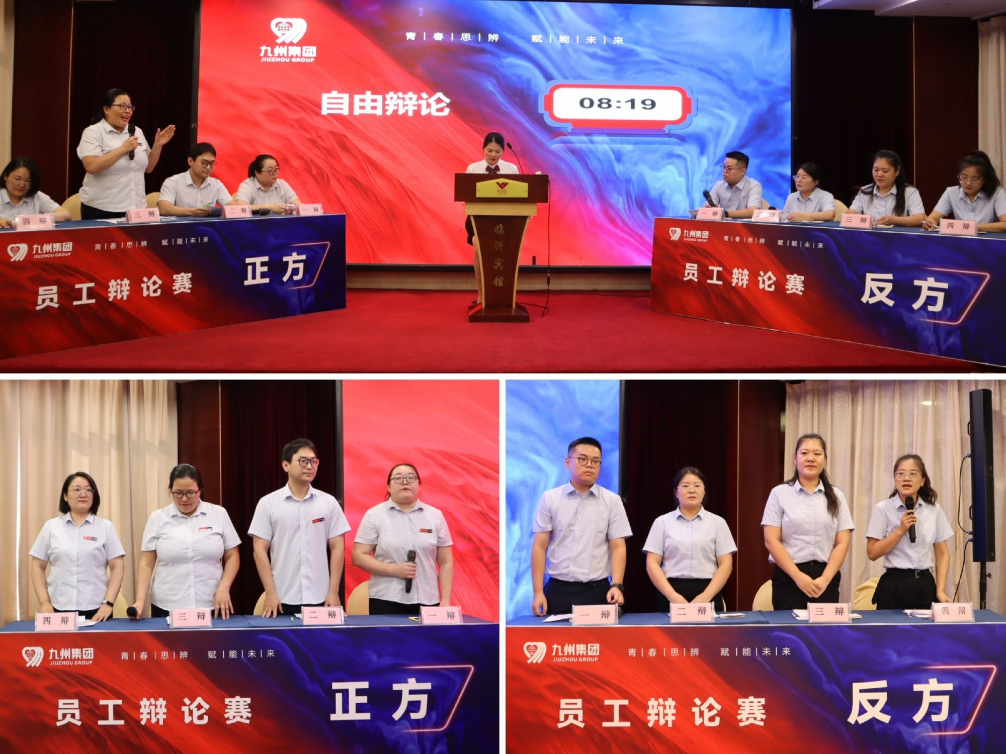 7月24日,由集團(tuán)團(tuán)委主辦的“青春思辨 賦能未來”九州集團(tuán)員工辯論賽在臨沂賓館沂蒙路店成功舉辦,來自集團(tuán)各團(tuán)支部的六支代表隊共24名選手齊聚一堂,以辯會友、以論明理,展開了一場思想碰撞與智慧交鋒的盛宴。