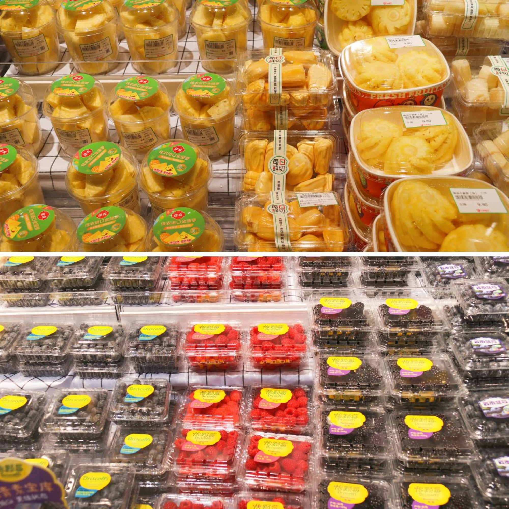 果蔬區(qū)引進了全球直采、產地直達的各地特色水果,為消費者帶來第一手的新鮮食材;還增加了新鮮果切等項目,顧客即買即食,方便、快捷又貼心。