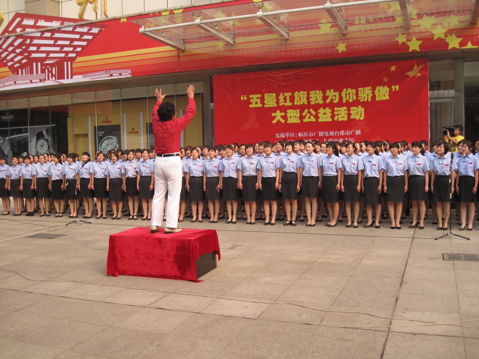 十月一日,由臨沂廣播電視臺(tái)都市廣播、九州商業(yè)大廈共同發(fā)起的“五星紅旗我為你驕傲”大型公益活動(dòng),在九州大廈門前廣場(chǎng)舉行。在偉大祖國(guó)生日來臨之際,用升國(guó)旗和頌紅歌的方式為共和國(guó)母親六十一華誕謳歌和禮贊。