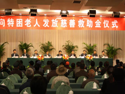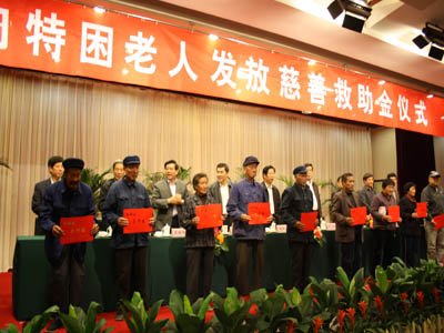 在我省第23個老人節(jié)和“九九”重陽節(jié)之際,集團與市老齡委、市慈善總會、臨沂日報報業(yè)集團等單位聯(lián)合舉行了“向特困老人發(fā)放慈善救助金”活動;顒由蠟100名孤寡特困老人和100名百歲老人每人發(fā)放了1000元的救助慰問金。 作為老齡人口大市,我市重視發(fā)展老齡事業(yè),通過加強領(lǐng)導(dǎo),完善社會保障體系等措施,在全社會營造了濃濃的敬老愛老助老氛圍。眾多愛心企業(yè)積極參與,推動了我市老齡事業(yè)的發(fā)展。作為“臨沂市十大愛心企業(yè)”,集團積極參與、支持全市老齡事業(yè)的發(fā)展,用實際行動扶老、助老,向老年人奉獻愛心。 多年來,集團在事業(yè)發(fā)展的同時,始終牢記報效國家、回饋社會、投身公益的責(zé)任,積極投身慈善事業(yè)。通過開展慈善救助、“慈心一日捐”、“送溫暖”等一系列活動,積極參與到各類助學(xué)、助殘、賑災(zāi)、濟困等公益事業(yè)中來。幾年來,集團在各項公益活動累計捐款捐物達(dá)數(shù)百萬元,為推動全市慈善事業(yè)的發(fā)展做出了重要貢獻。 “老吾老以及人之老”,關(guān)愛老人是我們中華民族的傳統(tǒng)美德,也是我們?nèi)鐣墓餐?zé)任。集團此次向特困老人發(fā)放慈善救助金活動是集團用實際行動關(guān)愛老人的具體體現(xiàn),有利于喚起全社會對尊老敬老的重視,有利于在全社會樹立尊老、敬老、愛老、助老的良好風(fēng)氣。 市委常委、市總工會主席林祥余,市人大顧問、市慈善總會名譽會長李寶智,市政府副秘書長沈孝生,市民政局局長姜新利,市老齡辦主任聶成新,市慈善總會副會長楊本渠,集團董事長楊沂城,黨委書記王佐文出席儀式并在主席臺就坐。