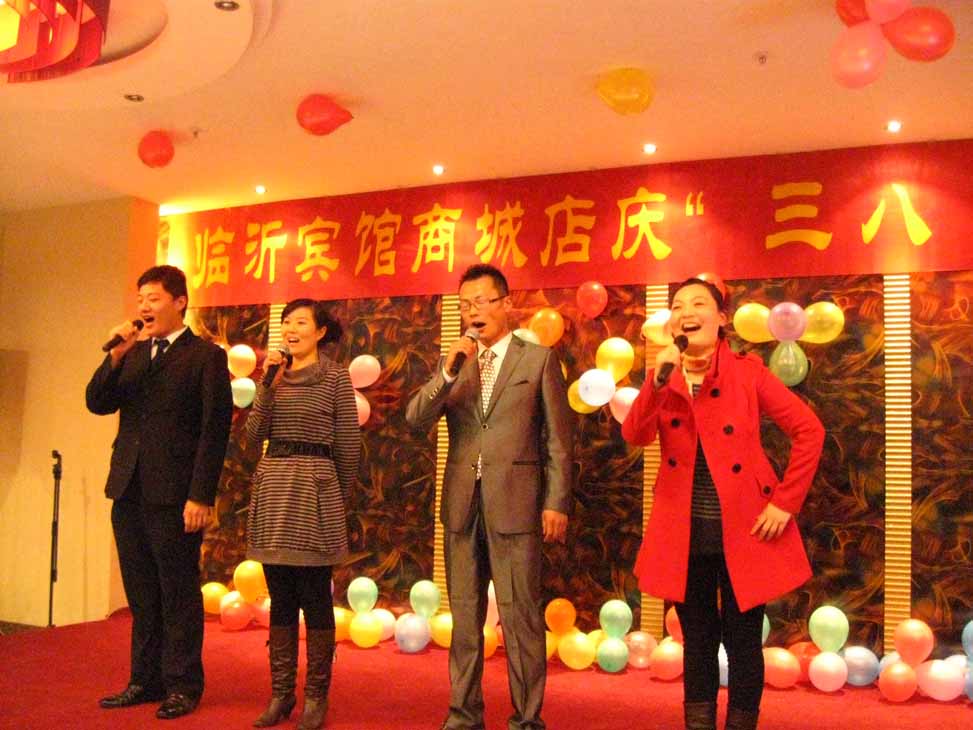 為活躍氣氛,豐富員工業(yè)余文化生活,在一年一度的三八婦女節(jié)來(lái)臨之際,商城店組織開(kāi)展了以“美麗節(jié)日 快樂(lè)共享”為主題的臨沂賓館商城店慶“三八”聯(lián)誼會(huì)。晚會(huì)上獨(dú)唱、對(duì)唱、串燒、街舞、互動(dòng)游戲等節(jié)目個(gè)個(gè)精彩;餐廳、廚房、客房、后勤員工分區(qū)打擂,互相喝彩、熱鬧非凡;小姑娘、小伙子、老大姐等同樂(lè)共享人人參與。用最真誠(chéng)的聲音,最精彩的節(jié)目,最熱烈的掌聲感謝母親、感恩九州,祝福明天。