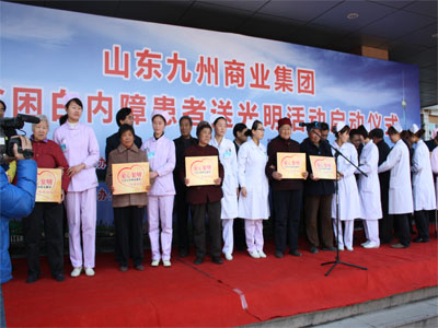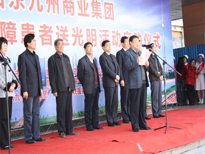 3月29日,山東九州商業(yè)集團為貧困白內(nèi)障患者送光明活動在市人民醫(yī)院眼科門診樓前舉行啟動儀式。該活動由集團出資60萬為我市600名貧困白內(nèi)障患者提供免費手術。臨沂市慈善總會副會長楊本渠、集團董事長楊沂城及市有關單位領導出席啟動儀式。 據(jù)了解,本次活動由市總工會、市慈善總會、共青團臨沂市委、市婦聯(lián)、市民政局、市衛(wèi)生局和山東沂蒙晚報傳媒有限公司主辦,山東九州商業(yè)集團、臨沂市人民醫(yī)院承辦。計劃投入資金60萬元,為全市600名貧困白內(nèi)障患者提供免費手術。定點醫(yī)院設在臨沂市人民醫(yī)院。凡申請接受免費白內(nèi)障手術的貧困患者,可到所在地民政部門領取《山東九州商業(yè)集團貧困白內(nèi)障患者報名表》,并在表上加蓋村(居委)、鄉(xiāng)鎮(zhèn)(辦事處)公章后,交縣(區(qū))民政局報市民政局慈善辦,統(tǒng)一安排手術。 [題圖:集團董事長楊沂城在啟動儀式上講話]