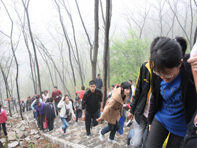 雨后的熊耳山,山陡路滑,團員青年們向山頂前進