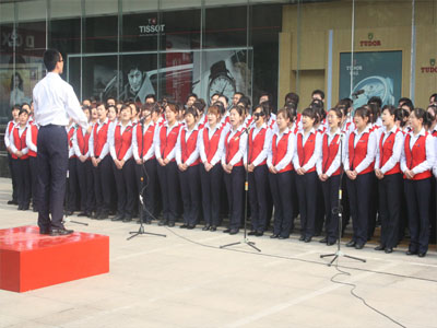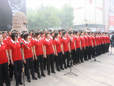 “我們是五月的花海,用青春擁抱時代;我們是初升的太陽,用生命點燃未來。”5月4日早晨,九州大廈門前廣場600多張充滿朝氣的面孔,放歌紅色經(jīng)典,用這種特殊的方式慶祝“五四”青年節(jié)。 《歌唱祖國》、《保衛(wèi)黃河》、《團結(jié)就是力量》、《沒有共產(chǎn)黨就沒有新中國》……一首首膾炙人口的紅歌飛揚在九州大廈前。年輕的一代通過紅歌歌唱祖國、了解祖國,慶祝自己的節(jié)日。 一首紅歌一面旗,一支紅歌一把號。這些凝聚人心、振奮精神、催人奮進的經(jīng)典紅歌,激發(fā)了廣大員工熱愛祖國、無私奉獻,立足本職、勤奮工作的極大熱情。 “五四”的火炬,喚起了民族的覺醒。壯麗的事業(yè),激勵著我們繼往開來。”紅歌大賽在合唱《九州集團之歌》中圓滿結(jié)束,伴著東方初升的太陽,朝氣蓬勃的九州人又投入到了建設(shè)九州美好明天的熱潮中去了。