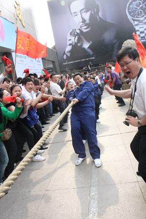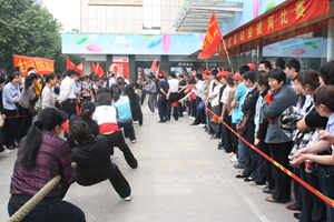 5月16日,“和諧九州”拔河比賽在九州大廈門前廣場舉行,九州商業(yè)大廈、臨沂賓館、九州連鎖超市公司、九州宜家佳、九州汽車銷售公司、集團行政等六支代表隊參加比賽。
