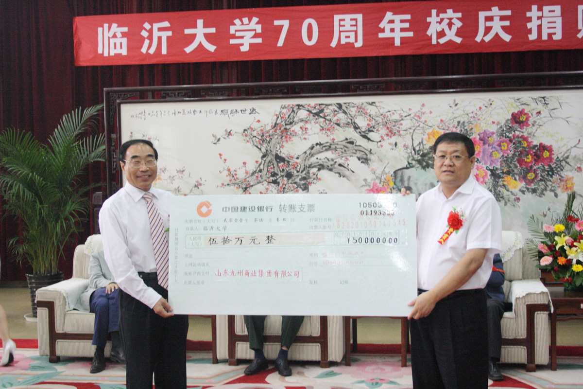在臨沂大學(xué)喜迎70華誕之際,集團(tuán)向臨沂大學(xué)捐款50萬(wàn)元,支持臨沂大學(xué)辦學(xué)。董事長(zhǎng)楊沂城,黨委書(shū)記王佐文出席捐贈(zèng)儀式。