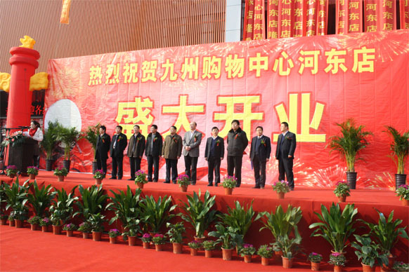 | 2011年12月23日,九州購(gòu)物中心河?xùn)|店舉行開(kāi)業(yè)慶典,河?xùn)|區(qū)委書(shū)記王曉軍、區(qū)人大、區(qū)政府、區(qū)政協(xié)等領(lǐng)導(dǎo)與集團(tuán)領(lǐng)導(dǎo)共同為九州購(gòu)物中心河?xùn)|店開(kāi)業(yè)剪彩。九州購(gòu)物中心河?xùn)|店位于河?xùn)|區(qū)黃金地段,經(jīng)營(yíng)面積近4萬(wàn)平方米,定位于以中高檔百貨商場(chǎng)與超市業(yè)態(tài)相結(jié)合的綜合性購(gòu)物中心。 開(kāi)業(yè)慶典現(xiàn)場(chǎng)