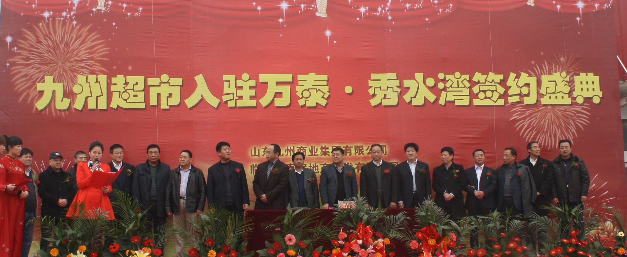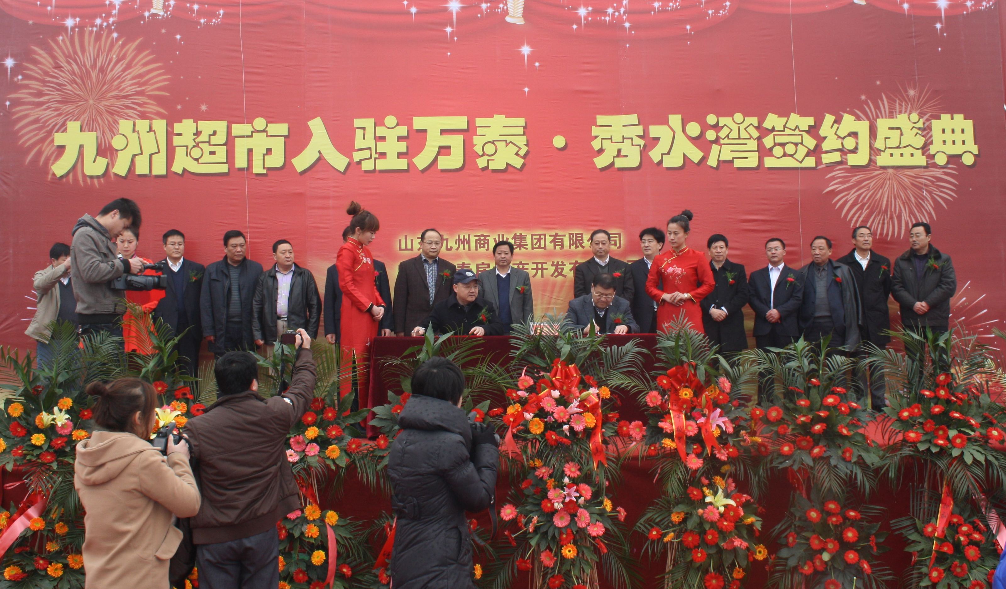 3月17日,九州超市入駐萬泰•秀水灣簽約儀式在北城新區(qū)舉行。集團(tuán)領(lǐng)導(dǎo)出席簽約儀式。