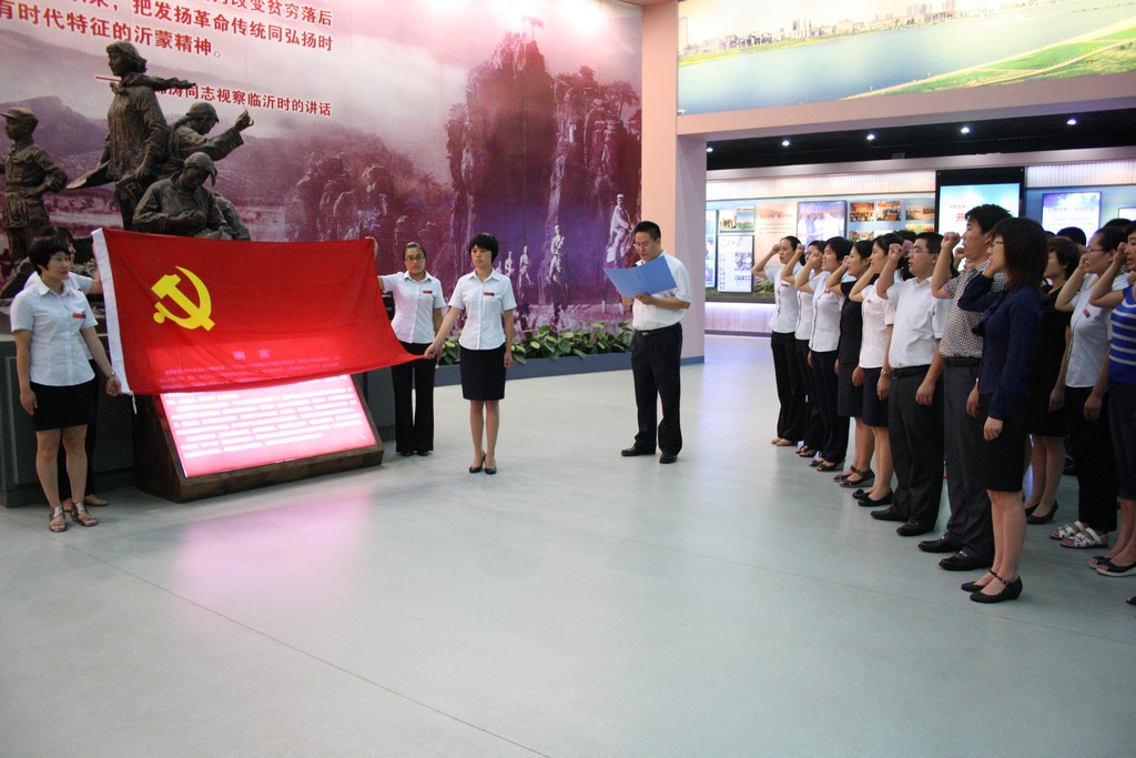 弘揚(yáng)沂蒙精神,接受革命傳統(tǒng)教育;繼承先烈遺志,做一名合格的共產(chǎn)黨員。在中國(guó)共產(chǎn)黨建黨91周年之際,集團(tuán)黨委于7月5日上午,組織預(yù)備黨員、入黨積極分子120余人赴華東革命烈士陵園,舉行新黨員宣誓儀式,并參觀沂蒙精神展。 雨中的華東革命烈士陵園,松柏蒼翠逼人,革命烈士紀(jì)念塔愈發(fā)莊重肅穆。一磚一瓦,一草一木,都在無聲訴說著革命先烈的英雄事跡。在沂蒙精神展館,這個(gè)記錄革命先輩豐功偉績(jī),傳承沂蒙精神的地方,集團(tuán)黨委副書記、組織委員楊永東帶領(lǐng)30余名預(yù)備黨員,面對(duì)黨旗莊嚴(yán)宣誓,加入中國(guó)共產(chǎn)黨。隨后,全體預(yù)備黨員和入黨積極分子一起參觀沂蒙精神展,珍貴的歷史照片,革命先烈的遺物,復(fù)原的戰(zhàn)爭(zhēng)場(chǎng)景、講解員的細(xì)致講解……讓我們重溫了沂蒙光榮和輝煌的過去,再現(xiàn)了沂蒙人民為新中國(guó)的成立和建設(shè)自己的美好家園作出的巨大奉獻(xiàn)和不懈努力。 這次活動(dòng),給大家上了一堂特殊的“黨課”,大家紛紛表示要進(jìn)一步弘揚(yáng)偉大的沂蒙精神,繼承和發(fā)揚(yáng)革命先烈遺志和光榮革命傳統(tǒng),堅(jiān)定信念,以實(shí)際行動(dòng)做一名合格的共產(chǎn)黨員。