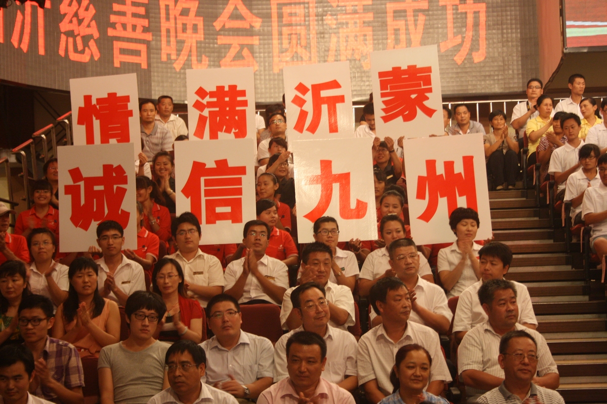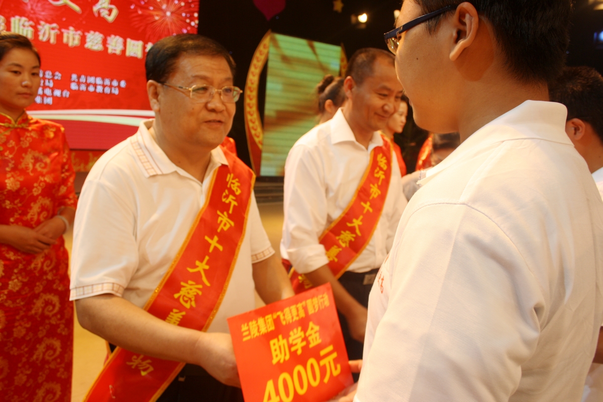 晚會結(jié)束后,省市領(lǐng)導(dǎo)與臨沂市十大慈善家合影留念 8月20日,臨沂市2013年慈善圓夢晚會在市廣電大廈演播大廳舉行。原副省長、山東省慈善總會會長謝玉堂,市委書記、市人大常委會主任張少軍,市委副書記李峰等領(lǐng)導(dǎo)出席。晚會現(xiàn)場對2013年十大慈善單位,十大慈善個人進(jìn)行表彰。 會上,臨沂市慈善總會、臨沂市民政局授予集團(tuán)“臨沂慈善獎”榮譽稱號,授予集團(tuán)董事長楊沂城“臨沂市十大慈善家”榮譽稱號,以表彰我集團(tuán)為我市慈善事業(yè)作出的突出貢獻(xiàn)。 九州慈善基金自2008年8月設(shè)立以來,累計發(fā)放助學(xué)金200余萬元,先后對來自全市各地的600余名寒門學(xué)子進(jìn)行救助。目前,該項目已成為我市知名的慈善助學(xué)品牌,并先后榮獲“臨沂慈善獎”,“山東慈善獎”等獎項。