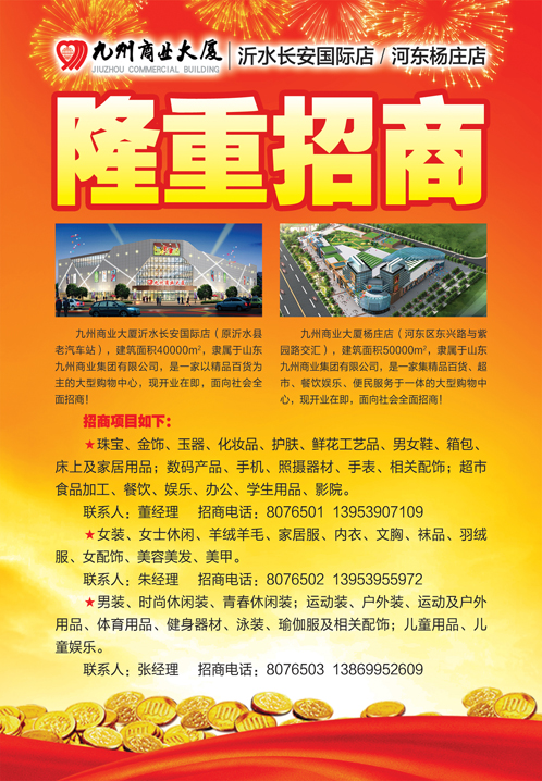 沂水長安國際店 河?xùn)|楊莊店隆重招商